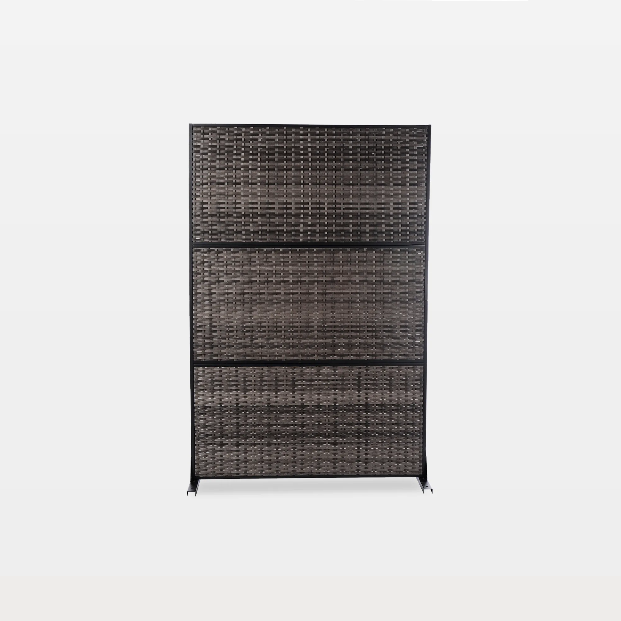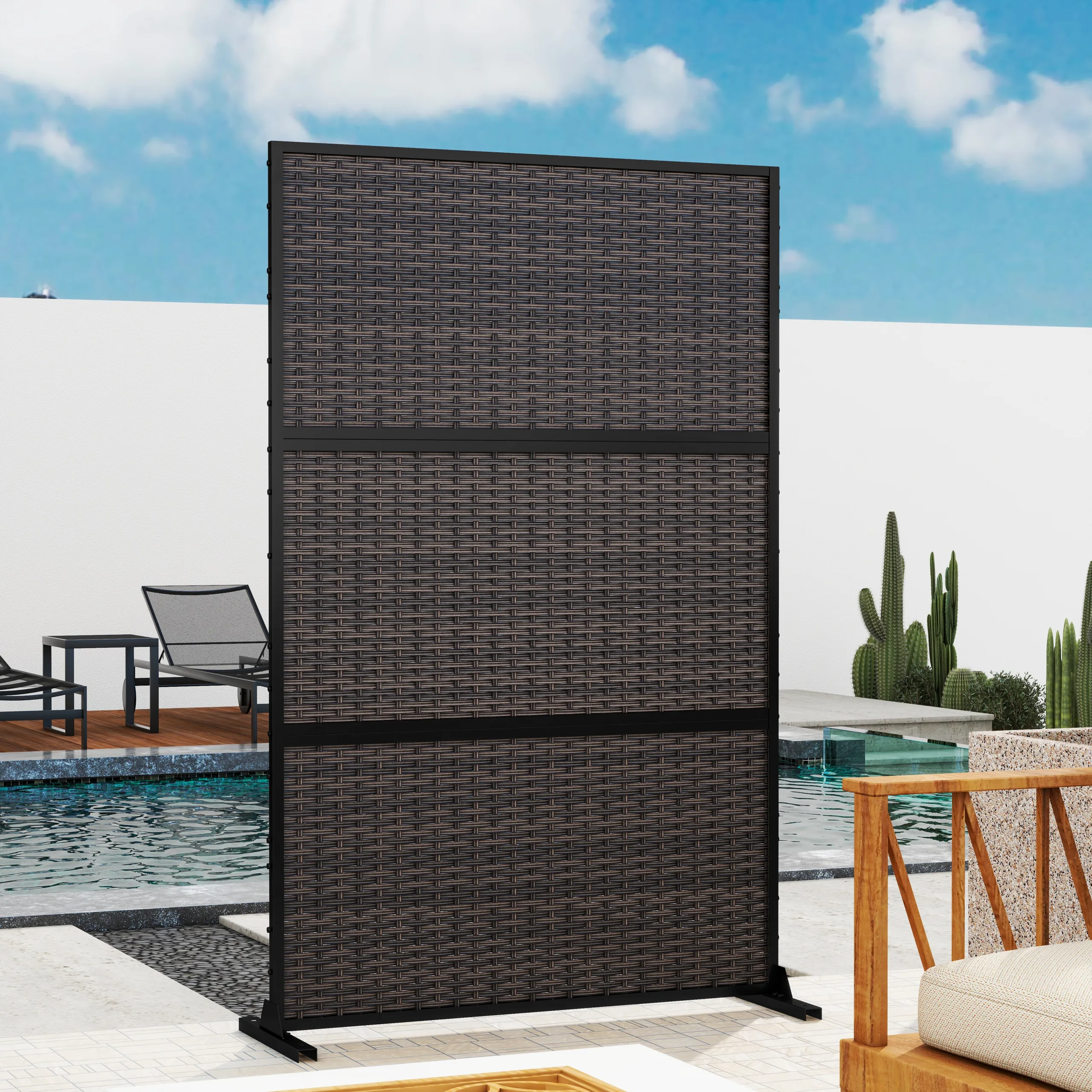 Add a little hush and a lot of texture to your outdoor seating with our Aldrae 6 ft H x 4 ft W Woven Polymer Outdoor Privacy Screen. Three tall panels feature a woven pattern, created with polymer strips in a wicker-style technique for a natural look without fragile fibers. A slim black metal frame and stabilizing feet help the screen stand straight along patios, balconies, and shared fence lines. You can lift off one or two panels to shorten the run when space is tight or you only need a smaller visual break. Weather-friendly polymer surfaces wipe clean with a cloth or hose, so your privacy wall stays neat from one season to the next.