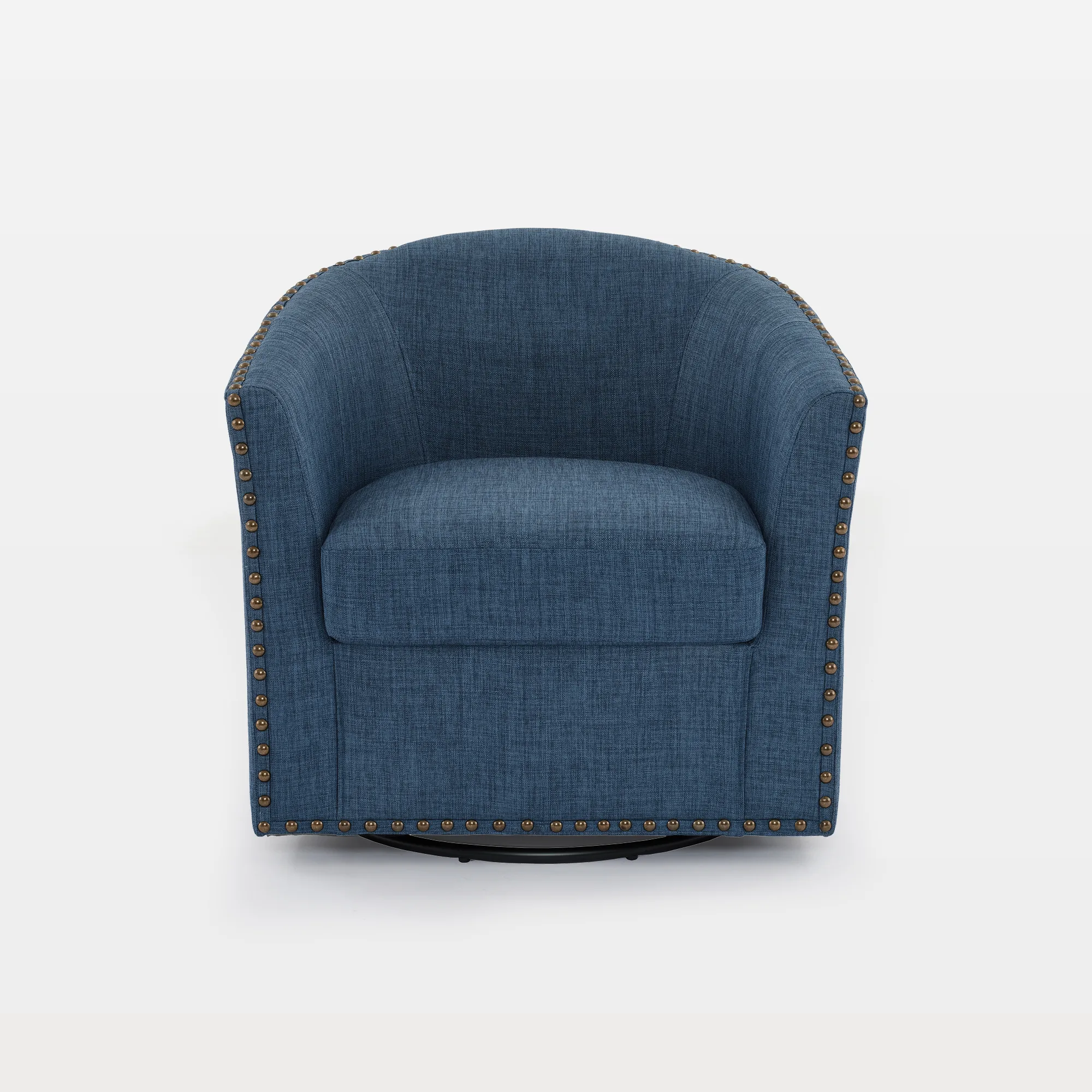 This stylish accent chair is designed to offer both comfort and elegance. Wrapped in soft bouclé fabric, the chair features a durable solid wood frame and iron legs that ensure stability. The 360° swivel functionality allows for smooth, effortless rotation in any direction. The seating is cushioned with a combination of innerspring/coil, foam, and synthetic fiber, providing a perfect mix of support and relaxation. The nailhead trim around the front legs adds a touch of classic charm to the modern design. Ready to use straight out of the box, this chair is ideal for adding comfort and style to your living room, bedroom, office, or any other space.