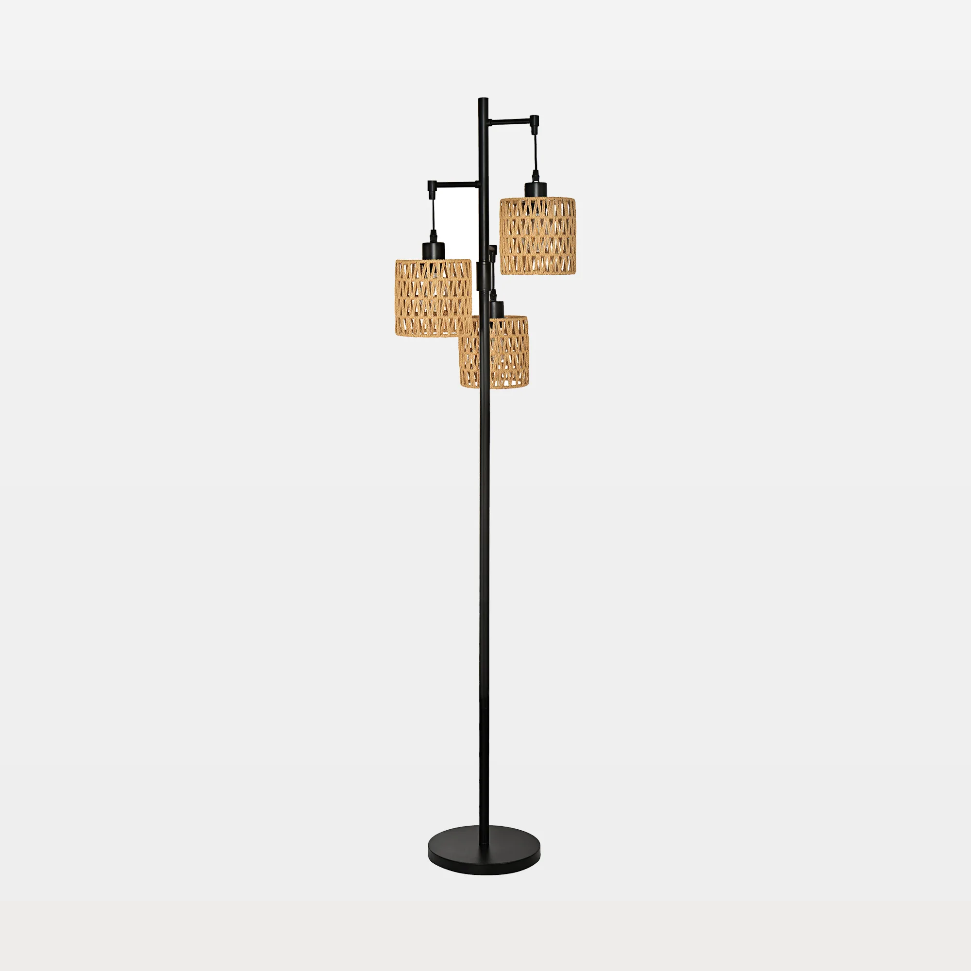 Illuminate your living room or bedroom and any corner of your home with these 3 light beach floor lamps, a unique and elegant design that will bring a bohemian vibe to your room. Crafted with a metal frame, it features a rattan shade and a clean silhouette. A straight-armed, sleek stem connects three drum shades with a woven rattan exterior. Diffused light from a standard 60-watt bulb brings a warm glow to your living room, bedroom, or office. We love the floor lamp’s easy-to-use cord and foot switch that lets you turn it on or off whenever you need extra light. This Bohemian tree-high lamp will be a great accent for living rooms, bedrooms, nurseries, and bohemian decor. It also makes a beautiful and practical gift for family and friends.