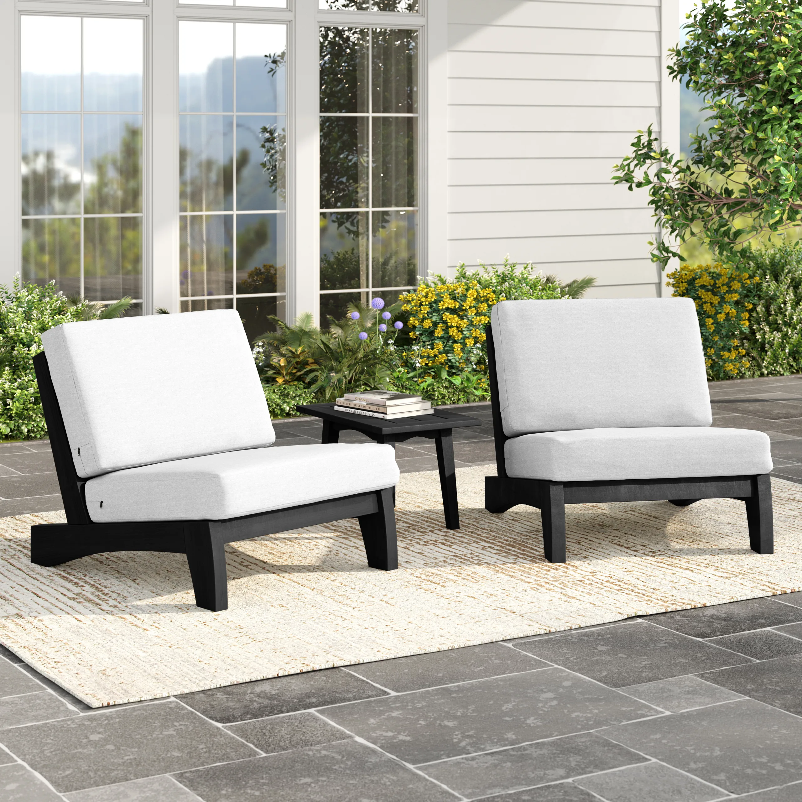 Build a breezy lounge moment in one go. The Benisor 3-Piece Teak Lounge Chair Set with Side Table pairs two armless chairs with a compact teak table that keeps drinks, sunscreen, and a book within reach. The chairs lean back just enough with ladder-back slats, plus foam-padded cushions in spill-resistant cotton-blend upholstery that feels comfortable but practical. Zip-off covers help you stay relaxed about spills. Teak naturally stands up well outdoors and keeps its shape more reliably through seasonal changes. An easy setup for a porch, poolside nook, or sunny corner!