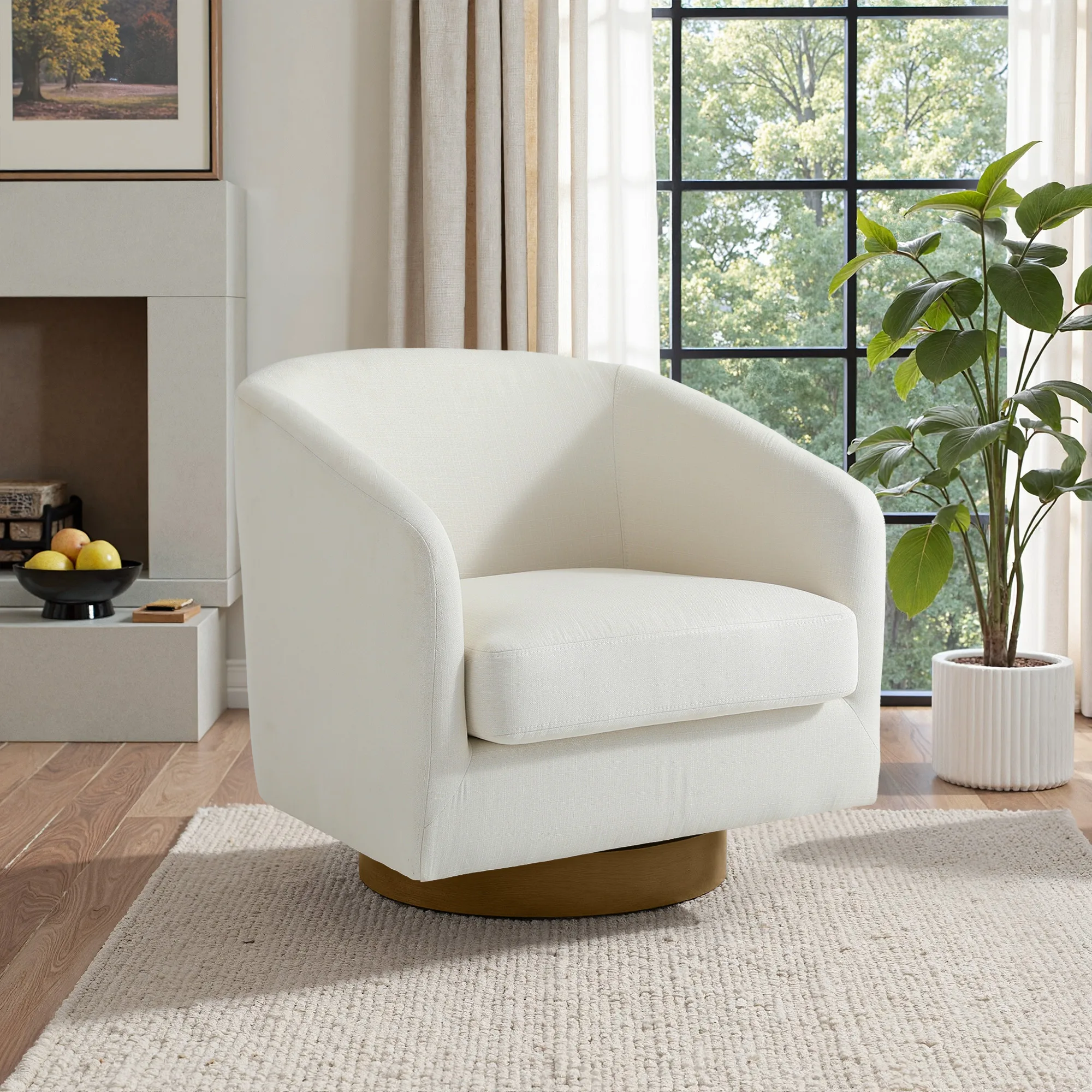 Whether you love curling up beside loved ones or you prefer lots of elbow room as you lounge, the swivel chair is perfect for a small space, making your space became more useful, this round barrel chair is the perfect pick for your home, effortlessly turn an empty space into a reading nook with this modern chair. as a reading chair, the comfy bedroom chair built with an engineered wood frame and features flared with a curved back to create that classic barrel silhouette.