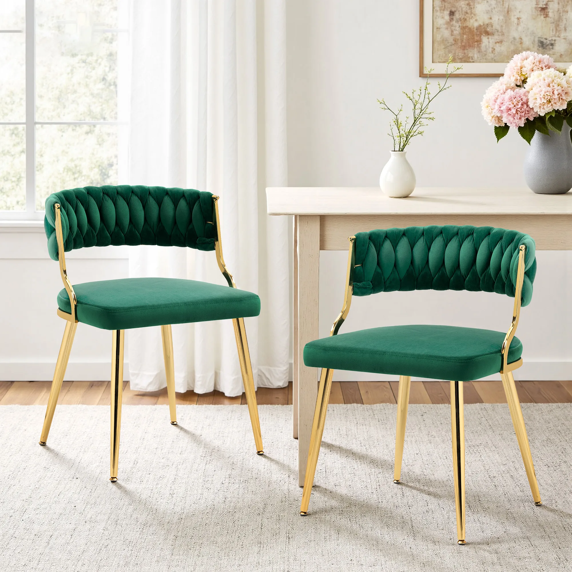 - Aesthetics: Velvet fabric covers the backrest and cushion of this chair, and the backrest is designed as a woven structure, unique and exquisite, together with the golden chair frame, making the chair look more noble and elegant.