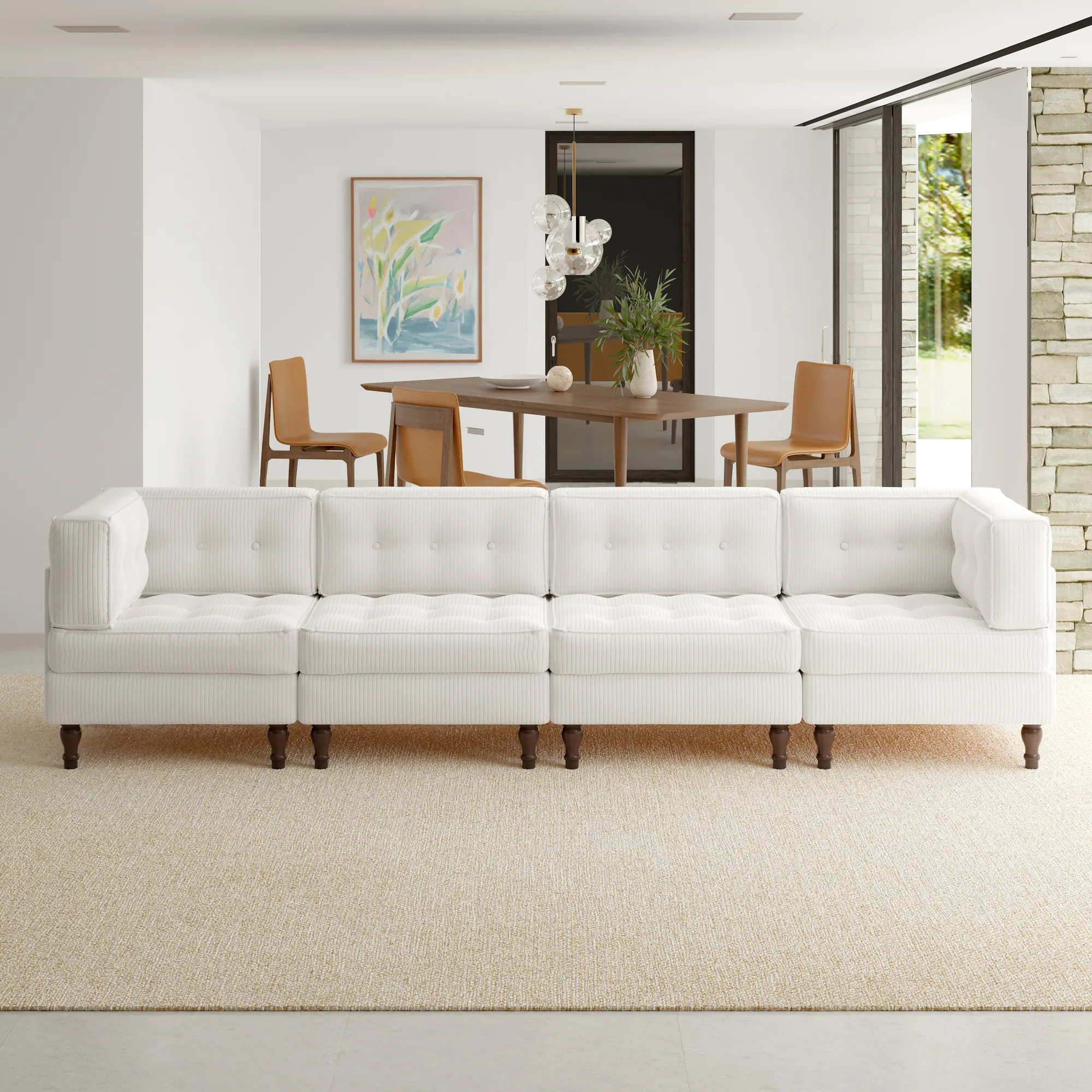 Frame a daily gathering spot with our Junave 3-Piece Button Tufted Corduroy Sectional Sofa, thoughtfully sized. Left and right corner chairs flank an armless seat to create a deep, open run. Button tufting adds gentle depth and pattern while piped trim keeps edges crisp. Ridged corduroy offers cozy seasonal tactility, friendly to lingering chats and weekend movies at home. Browse other Junave modules to extend seating, reshape corners, and mix pieces as routines change together.