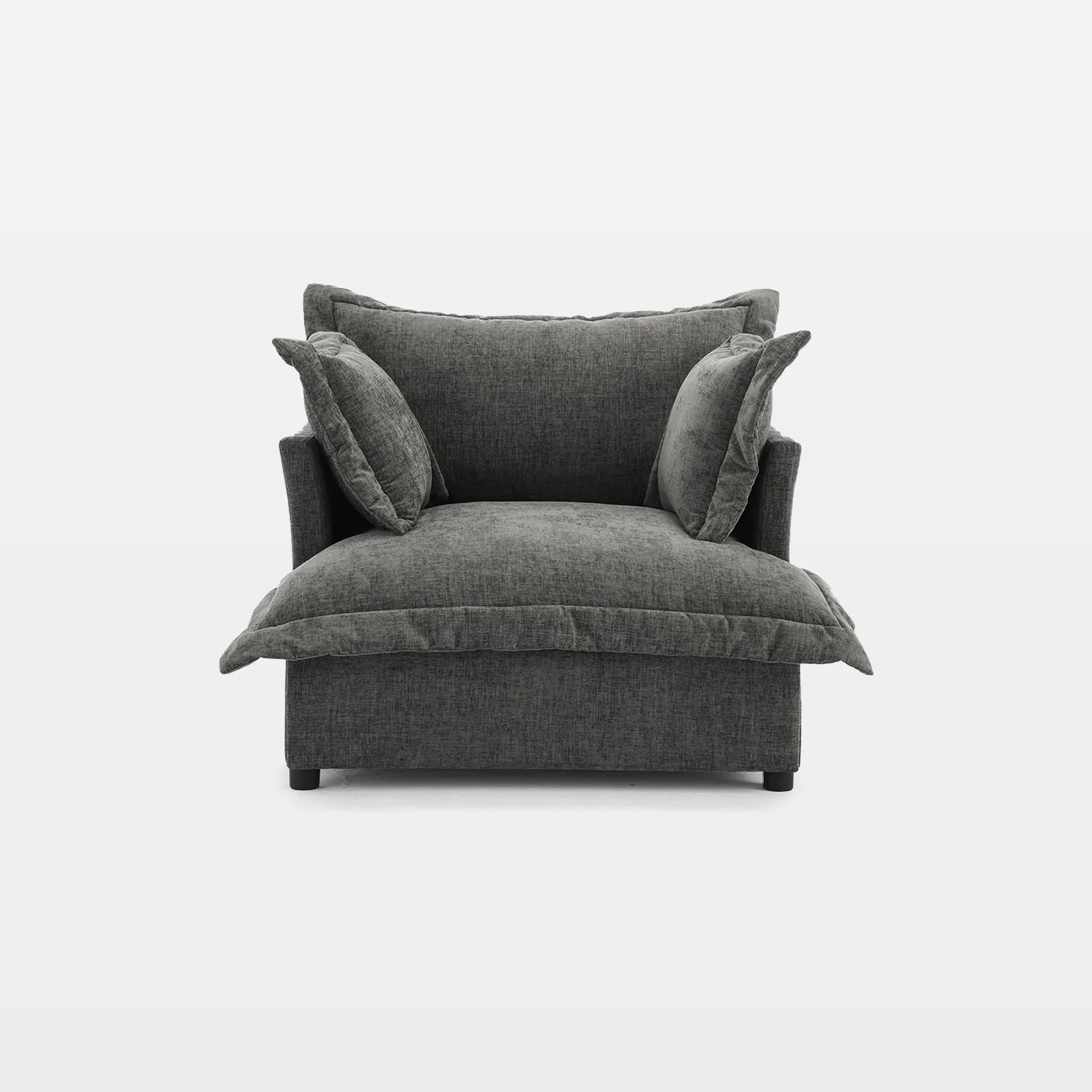 Settle deep and sit easy with our Lione Flange Edge Modular Chenille Single Sofa Chair. An overstuffed back and roomy seat invite sprawling comfort and relaxed, supportive posture. Flange edges frame the back, seat, and both arm cushions with casual, tailored definition. Warm chenille feels soft on skin, and a solid wood frame with sturdy legs steadies daily use. See the full Lione series to add corners, ottomans, and modules that build your best layout.