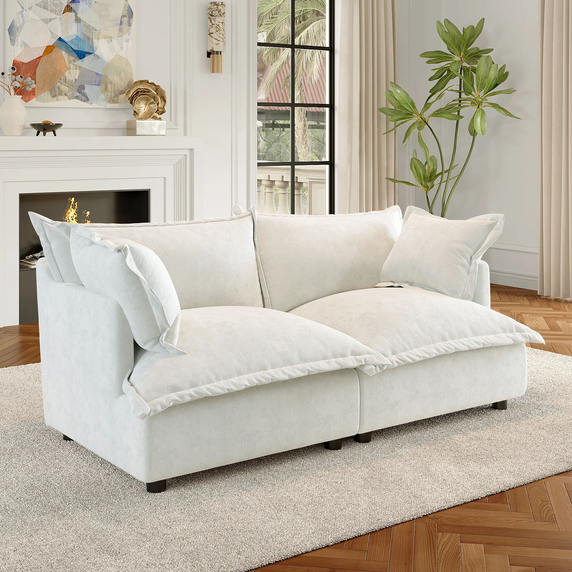 Share the deep seat, share the slow pace with our Lione Flange Edge Modular Chenille Upholstered Sofa. Two single-arm corner modules meet to create a lounge-ready loveseat made for closeness. Flange edges trace every back and seat cushion, lending relaxed polish and soft dimension. Skin-friendly chenille, overstuffed comfort, and sturdy legs over solid wood invite everyday gathering and long cozy movies. Add more Lione modules anytime to grow seating, reconfigure layouts, and match changing plans.