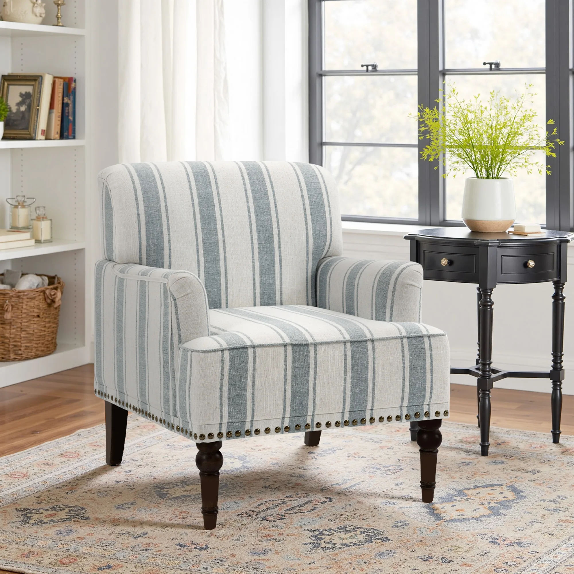 - Exquisite appearance design: The surface of this armchair is designed with a unique pattern, light color, easier to match, with linen fabric, more rustic. The lower circle of the chair body is decorated with nail heads and the chair legs are also designed in a unique style.