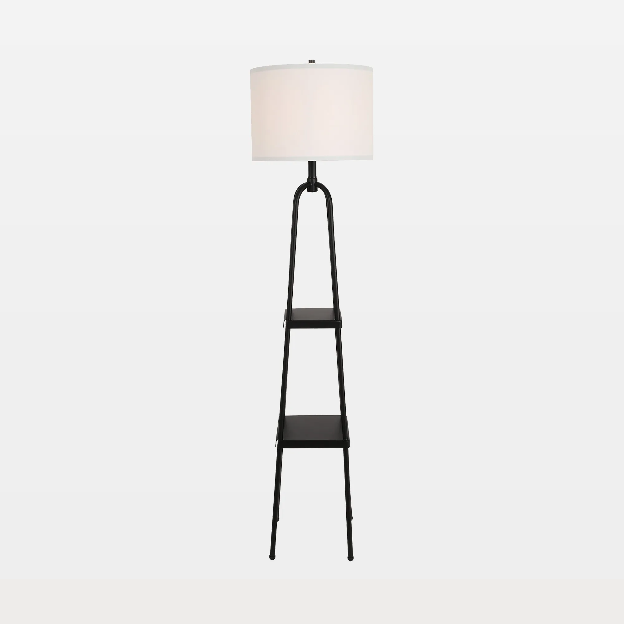 Home » shop » Modern Metal Etagere Floor Lamp With Shelves And Linen Shade