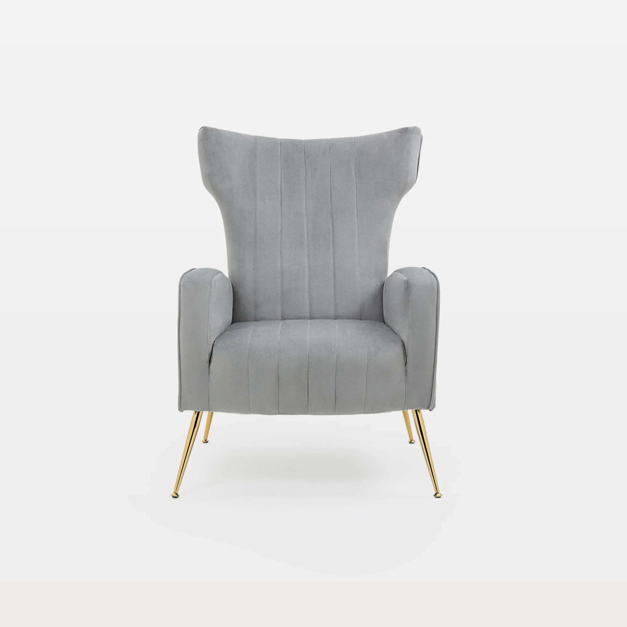 Need a glam accent that still feels soft? Want a chair that looks dressed up, but stays easy at home? Meet our Nadelle channel tufted armchair, a velvet wingback design with continuous vertical channels that flow from back to seat. The lines feel taller and cleaner, while the plush velvet rounds everything out. Slim splayed gold legs add a bright finish and keep the silhouette feeling light, not heavy.