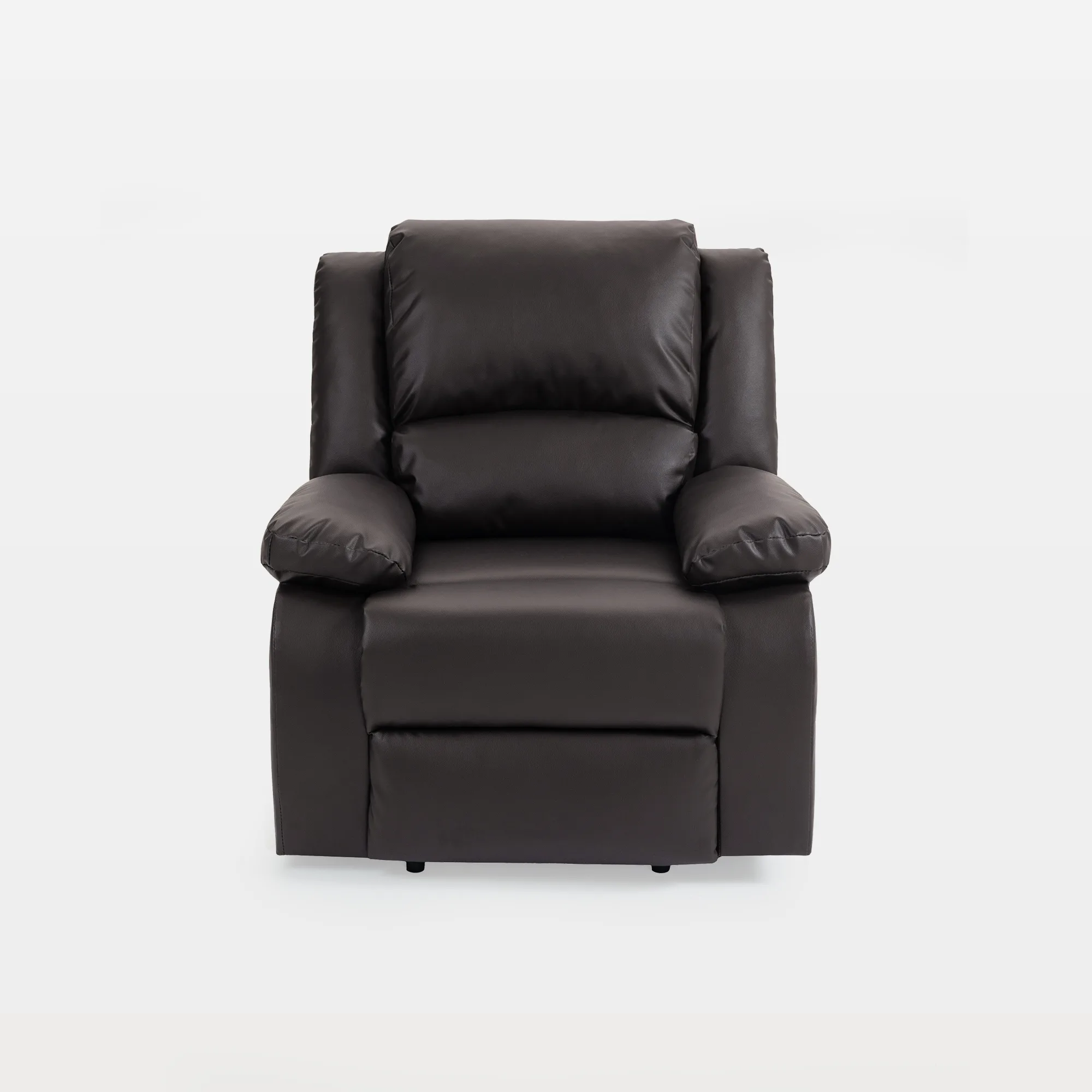 - Crafted with faux leather material, the recliner features an ultra-fluffy backrest and armrests, enveloping your entire body for heightened comfort.