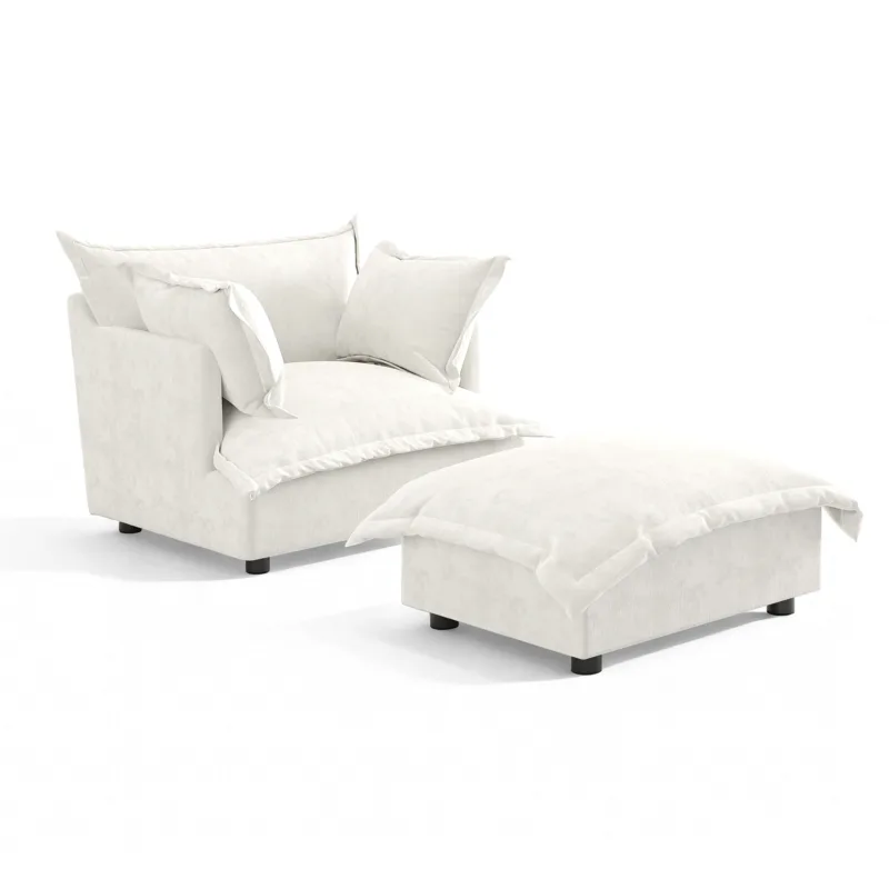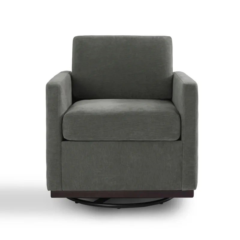 Metal legs with a square footrest provide slim, sturdy framing for everyday use.