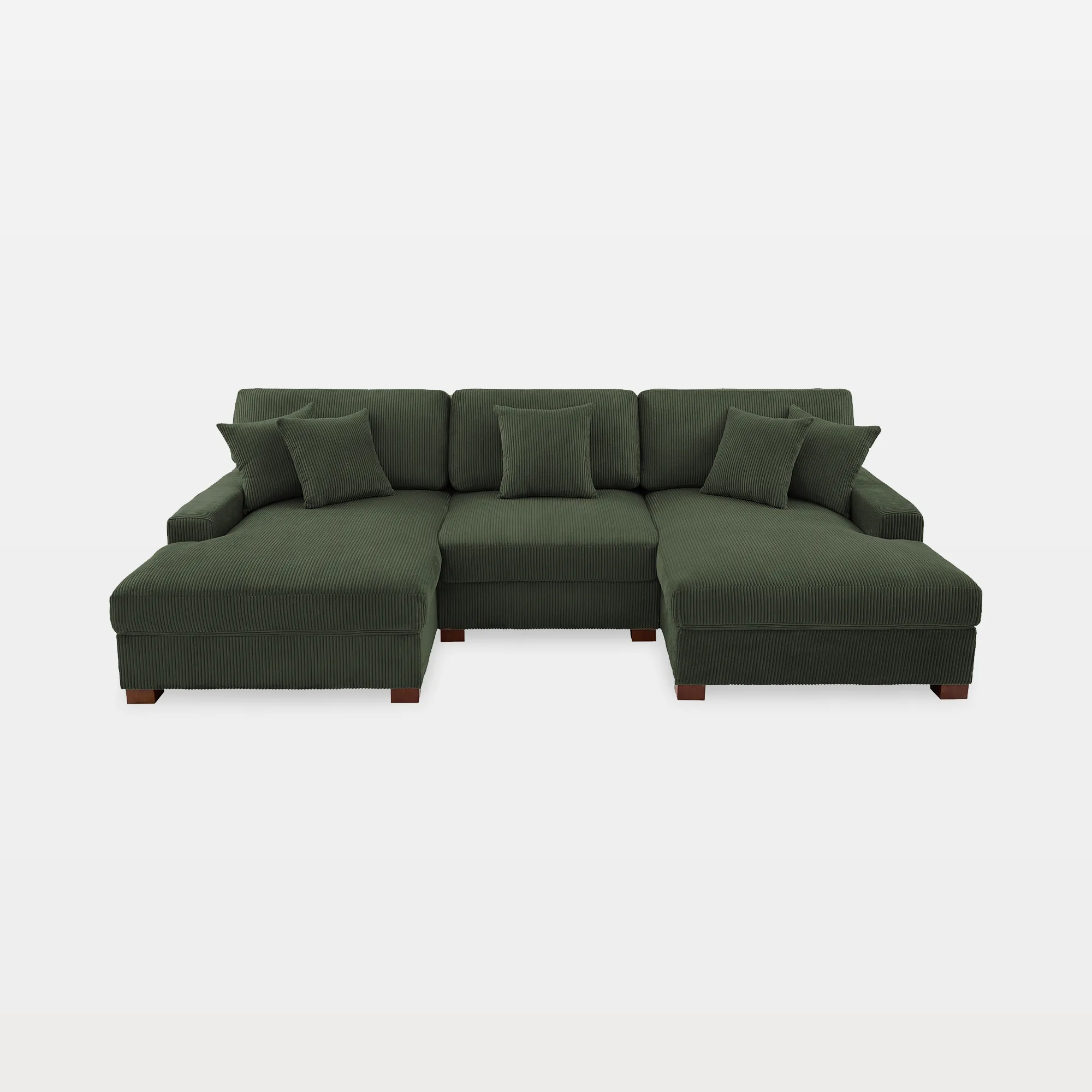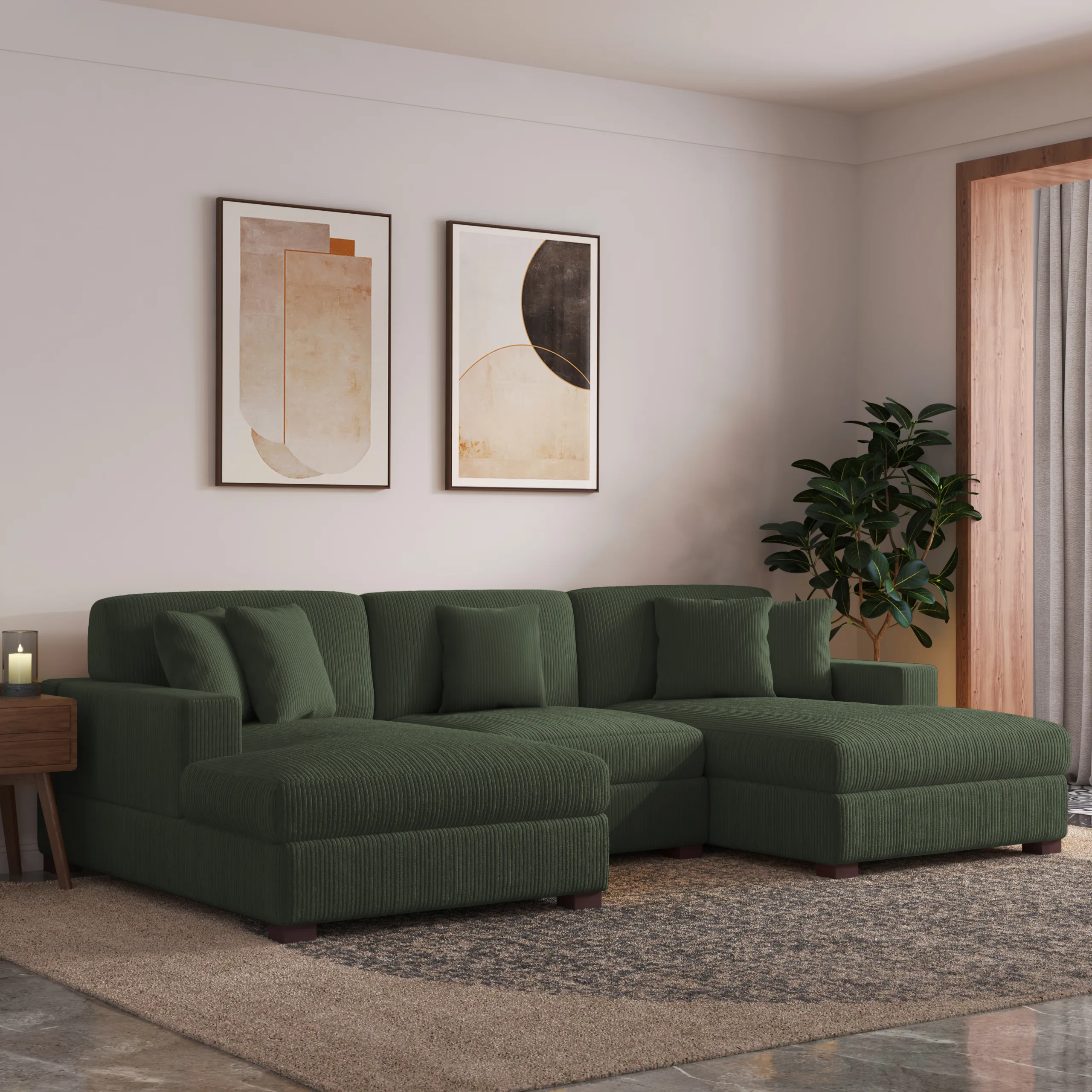 Bookend your night with two lounge spots, our Phydra 3-Seat Low Profile Upholstered Double Chaise Sofa makes it easy. Left and right chaises give everyone the long seat, with an armless center that keeps the silhouette continuous. Adjustable headrests help your neck and shoulders settle into a more natural, supported posture, while plush back cushions soften every lean. Choose faux fur for cozy warmth, chenille for rich softness, or corduroy for vintage ribbing that wears well. Low block wood legs keep it grounded, and metal connectors hold the modules snug. The room settles into a slower rhythm, ready for unwinding at either end.