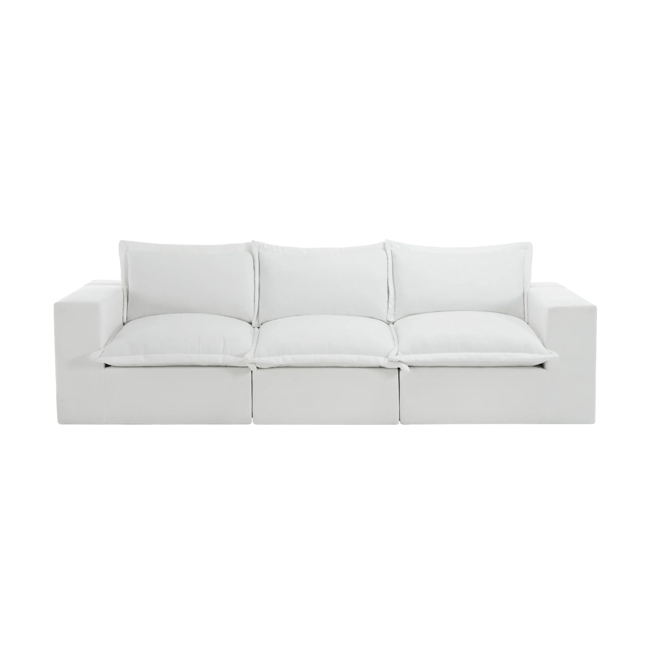 Let family nights line up in comfort on our Piereo 3-Piece Pillow Top Chenille Upholstered Sectional Sofa. Pillow-top cushions across all three seats bring soft, warm chenille texture into everyday lounging. Thick foam padding supports relaxed posture whether watching shows or catching up. The low, legless design keeps the sectional settled and steady within the room. With anti-slip bases and Velcro cloth connectors, it stays aligned and can connect with other Piereo modules whenever your seating needs grow.