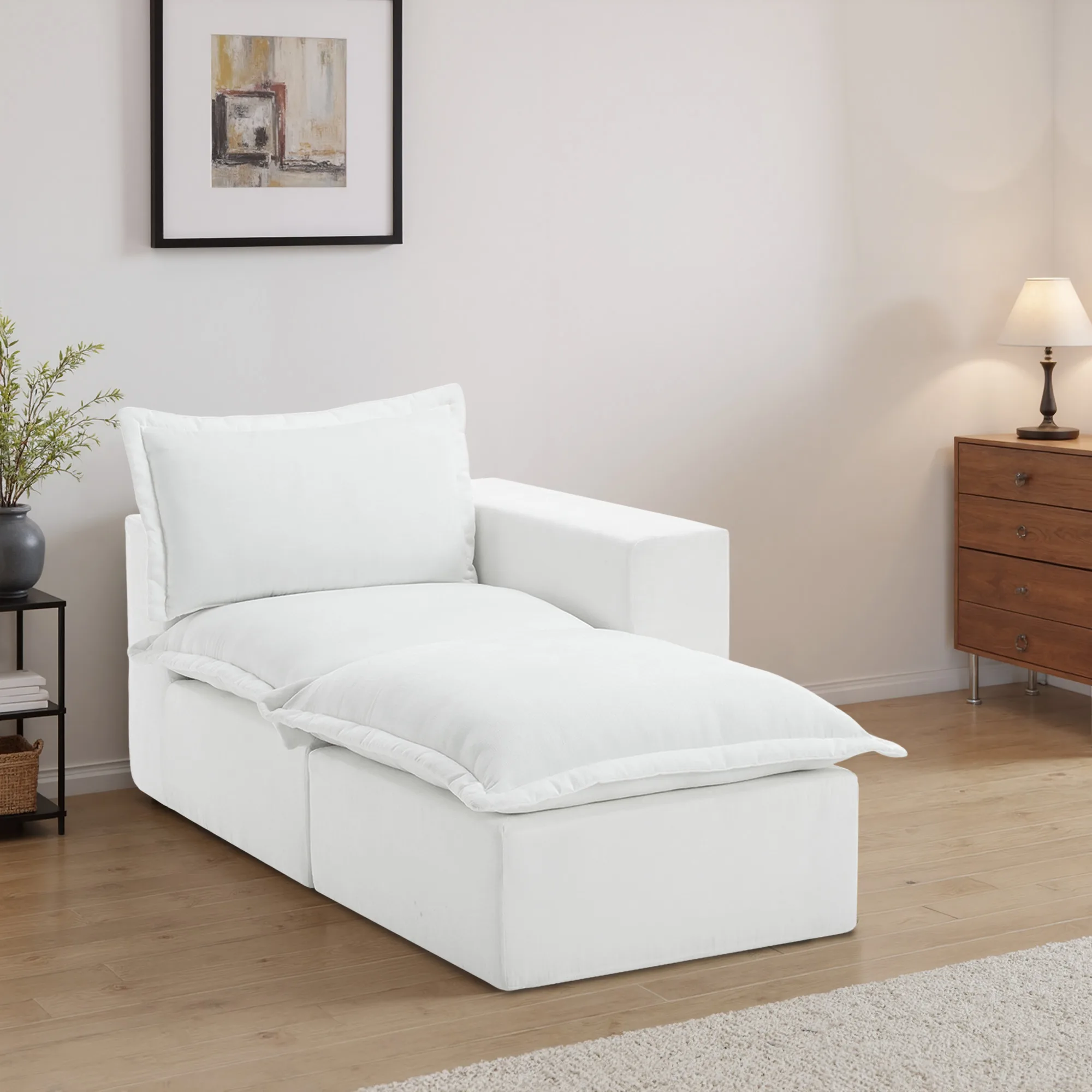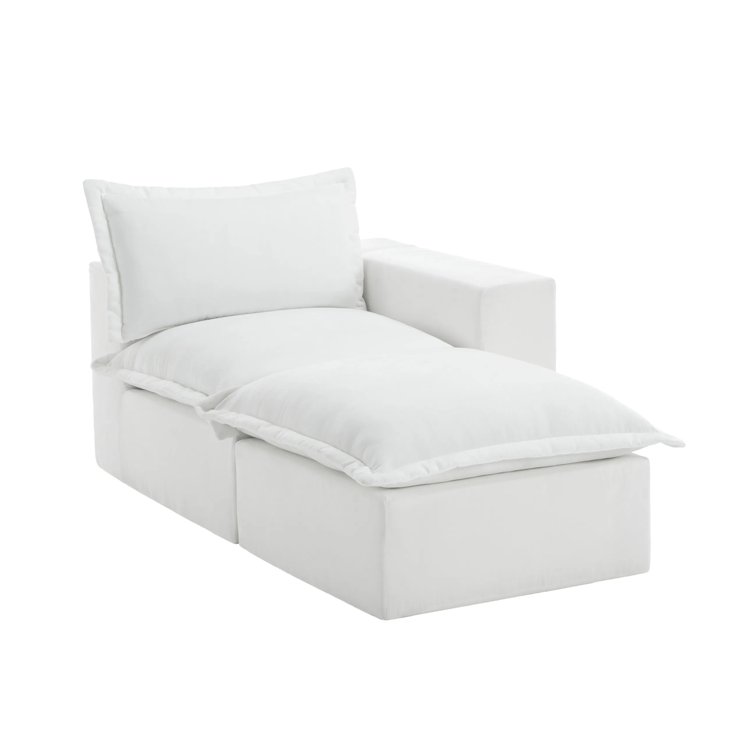 Turn “just a minute” into a real break on our Piereo Single Arm Chenille Modular Chaise Lounge with Ottoman. Pillow-top cushions span the back, seat, and ottoman for soft, warm comfort from head to toe. Thick foam padding encourages stretching out fully or curling up with a book. The ottoman can be moved aside when you need extra seating or a small landing surface. With a low, legless profile, anti-slip padding, and Velcro cloth connectors, this chaise adapts easily with other Piereo modules.