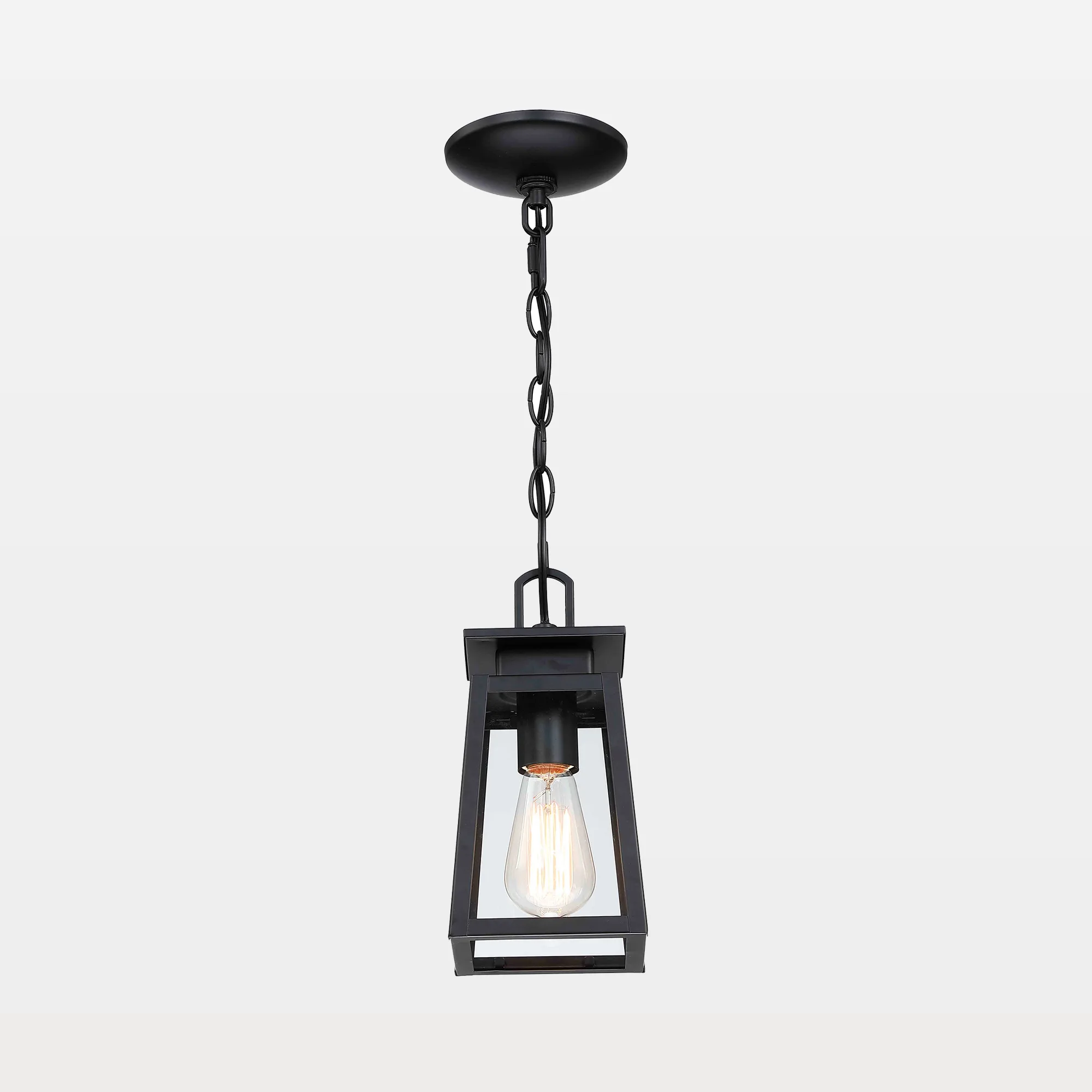 This hanging light is made of high-quality material in black finish with glass which creates an elegant, styling atmosphere no matter when it’s on or off. This pendant hanging lantern is completely weather resistant for any outdoor environment. Perfect for use in front door, porch, patio, garden, balcony, entryway and garage. It is durable and weather-resistant, suitable for long-term use in outdoor environment. The outdoor hanging lighting fixture is in open bottom for easy bulb replacement. No need to worry about rain and insects entering.Easily deal with all kinds of bad weather, perform wonderfully in dry, wet, high-temp, or low-temp situations for a long time. With 36 inches adjustable metal chain, you can change the length according to your porch, gazebo, yard, garden, and more outside house areas. And the outdoor pendant lights for patio can be installed on flat, sloping and vaulted ceilings.