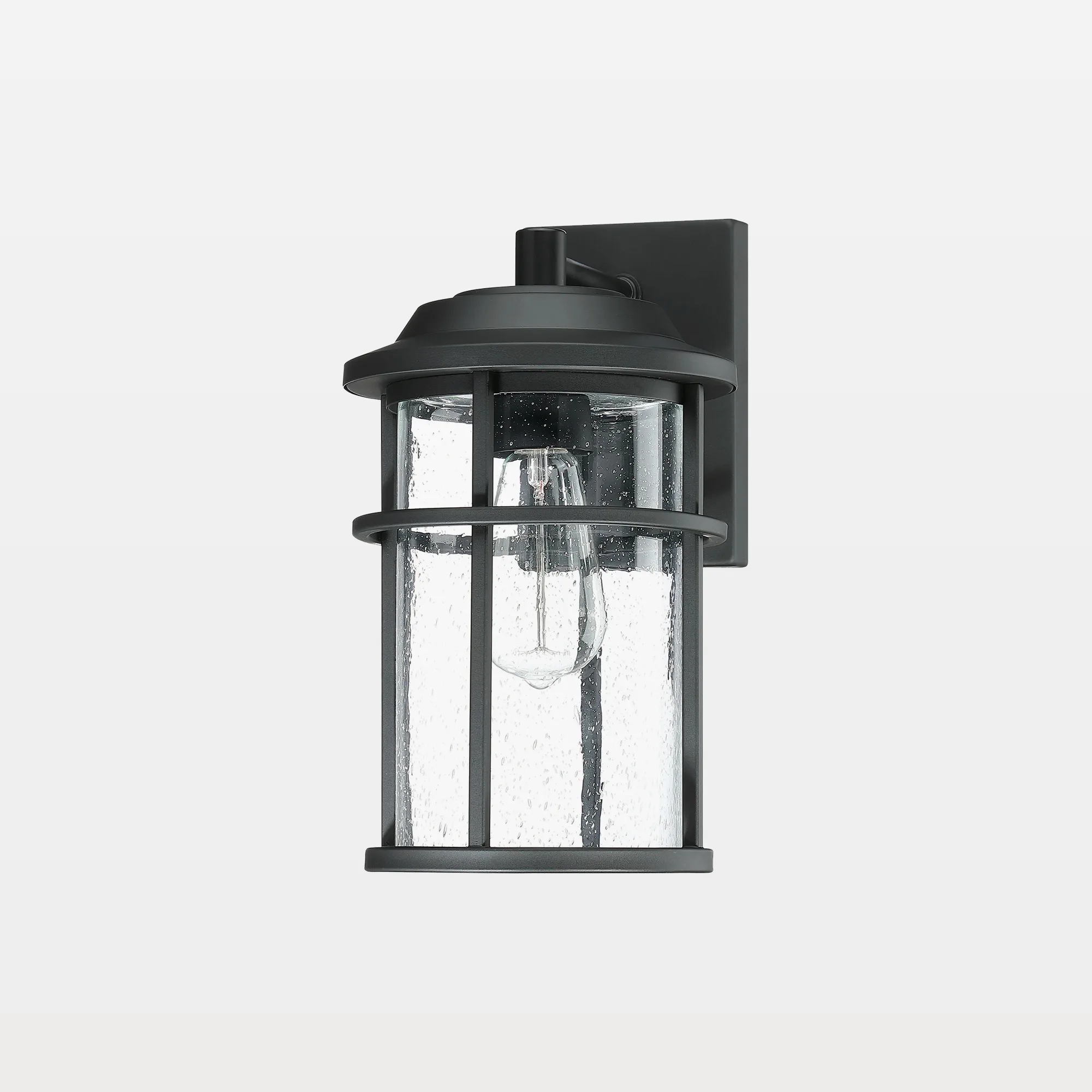This outdoor lantern with a clean contemporary design with a black finish to accent all decor styles. The clear seeded glass allows the maximum of light that creates an additional design element. With its classic black finish and clear seeded glass panes, the minimalist design of this wall sconce complements any decor making it the ideal piece for all your outdoor lighting needs.Photocell control provides night time on, daytime off to ensure efficient energy usage to save you money. Also, this wall sconce lighting is decorative wall-mounted fixture that provides a beautiful light for entryway, doorway, foyer, corridor, balcony, patio and porch.Our wall sconces with heavy-duty rugged metal construction and seeded glass shade, ideal for any outdoor environment.