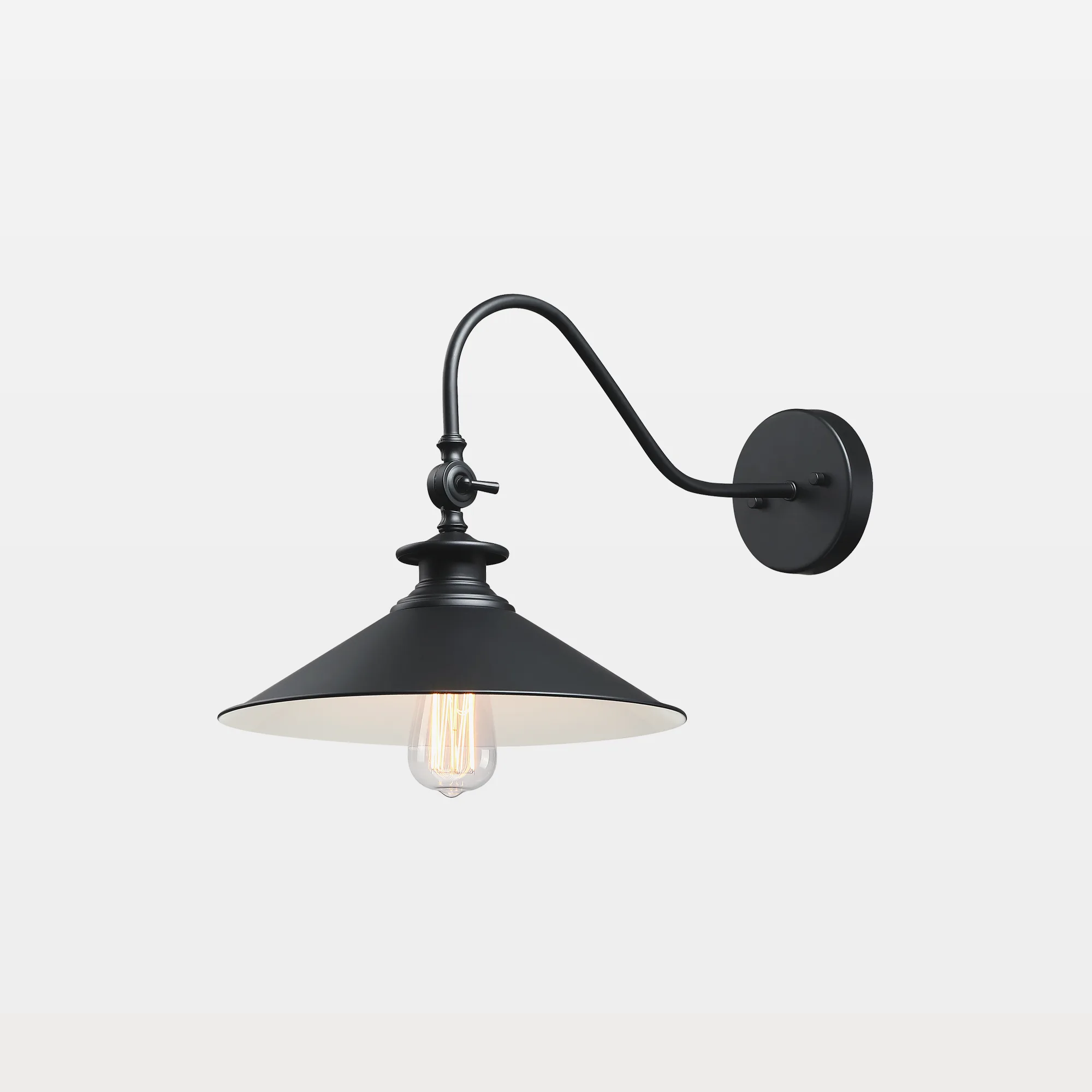 ena is a classic & popular style of farmhouse outdoor lighting products. Simple elements of industrial matte black finish, black interiors & clean lines, create a pleasant design that complements any outdoor patio porch backyard decor. In addition to the very modern outdoor wall decoration of farmhouses, basic barn lamps without sensors are more versatile. Barn lights are durable and suitable for any outdoor or indoor space. Outdoor wall lights with a farmhouse theme are very fit for commercial places such as cafes, etc. Indoor & outdoor available, home and business available, great value! Besides, outdoor barn lights are never outdated! So the exterior lights for a house can well adapt to severe weather such as being exposed to strong sunshine, heavy rain, and snow. Four seasons change, but they remain new and work well. So you don’t need to worry that they will paint off. If you are passionate about outdoor barn lights, our outdoor wall-mounted lights are your great choice!