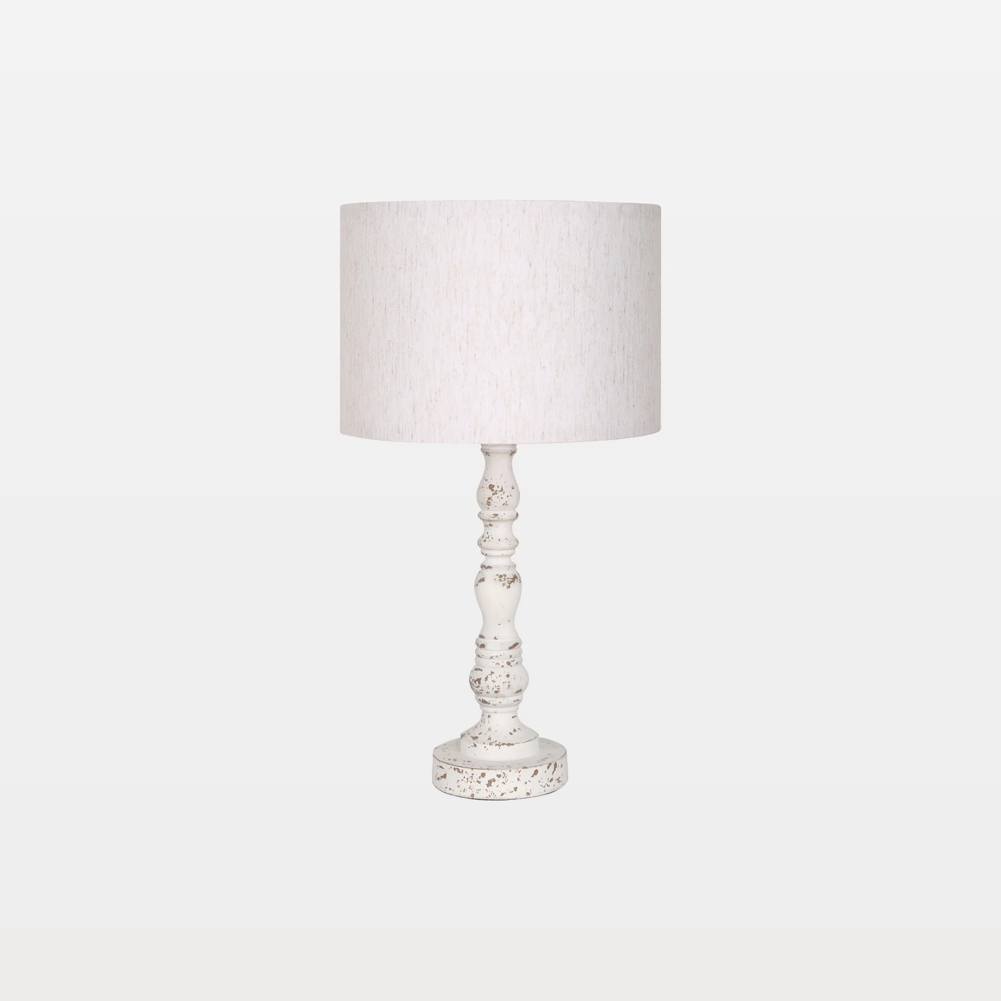 This lamp is made from durable resin with a irregular spots on the finish, emitting an elegant atmosphere while the light is on. It conveniently has an on/off rotary switch set on the socket, allowing you to easily control the ambient lighting. It supports 1-E26 (60W) bulb type and everything is UL certified, suitable for anywhere that’s dry and clean, ensuring versatility and safety. What truly makes it unique is its delicate off-white linen shade that offers warmth and texture in any space. There are two lamps included in one set.