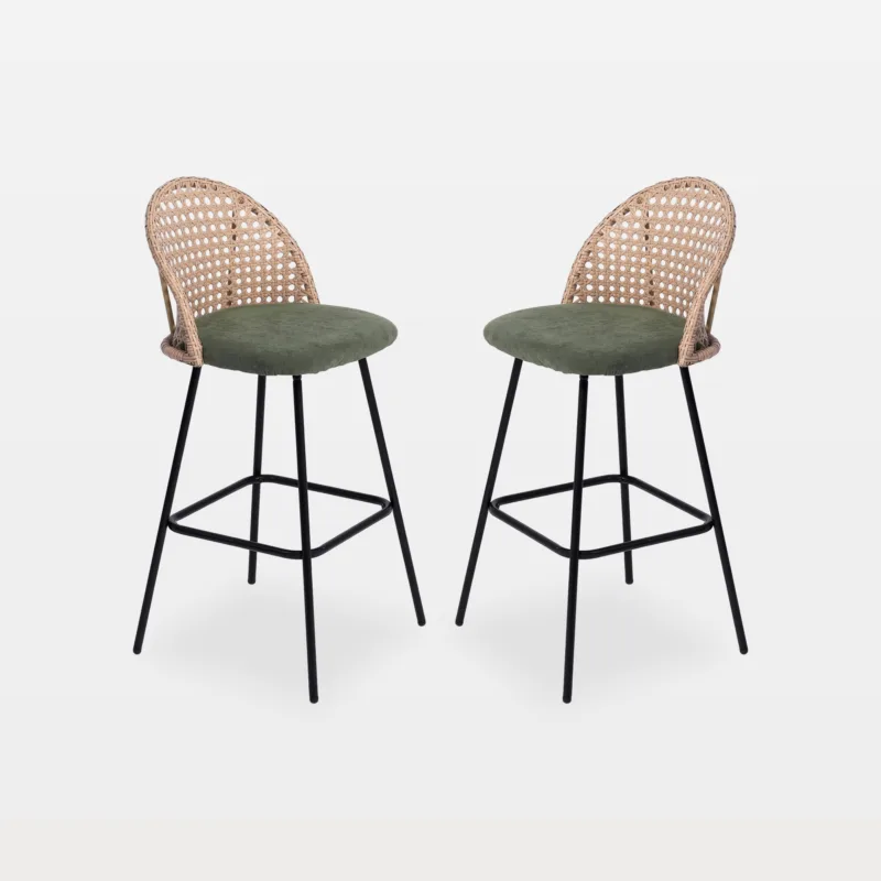 Tie the look to your fixtures and finishes. For a glam mood, choose velvet bar stools with a gold-finish base for soft texture and a hint of shine. For a modern industrial vibe, pick faux leather or leather bar stools on matte black metal for a durable, tailored line.