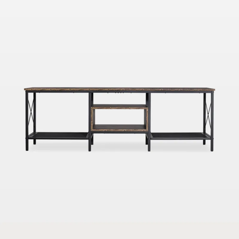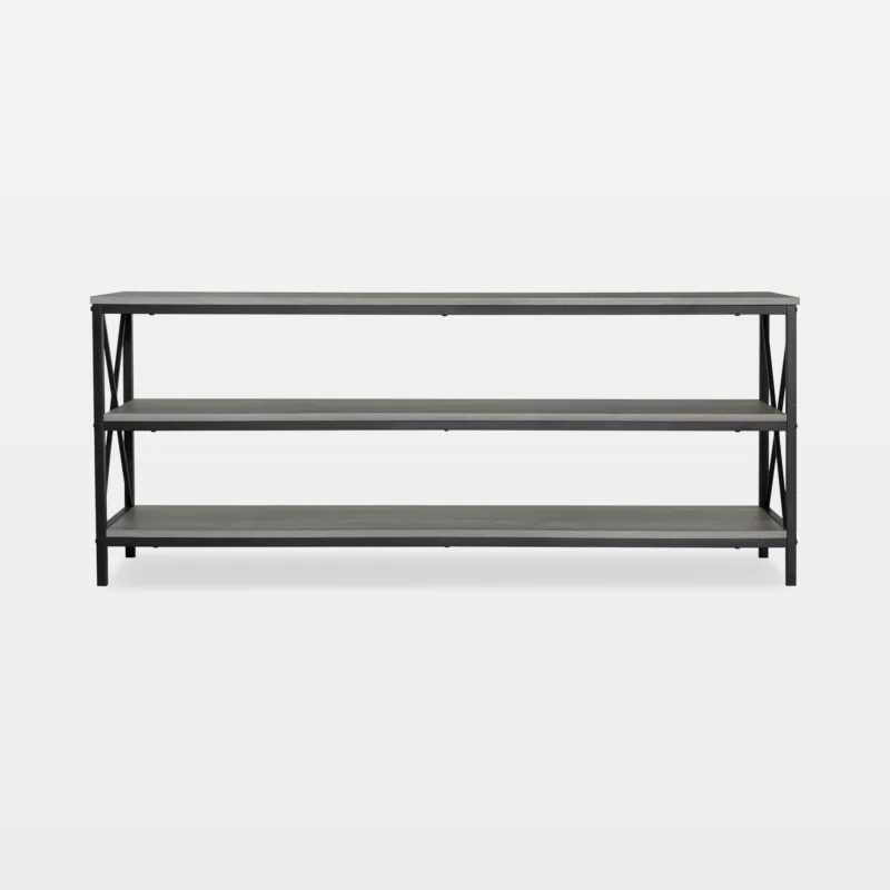 Prefer edge and utility? Try a wood and metal TV stand with open or semi-open shelves. Ventilated backs improve airflow for receivers and consoles, and the rugged mix suits urban rooms that want a durable, non-traditional TV stand.