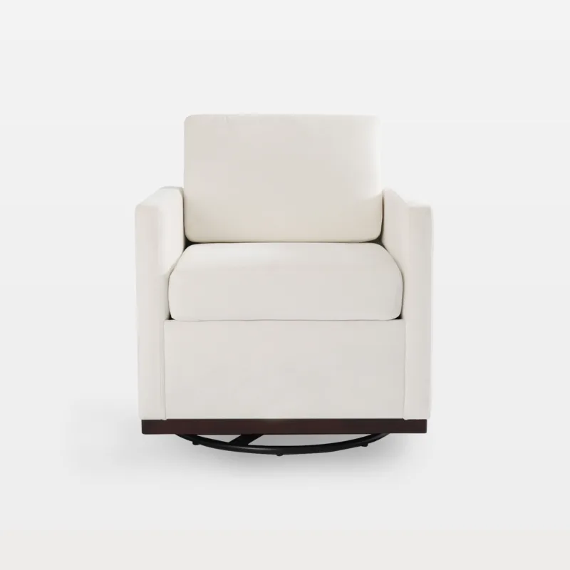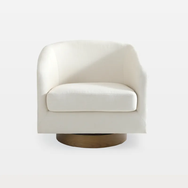 A rounded back supports your spine and cradles your arms. The shape feels welcoming during long reads or late talks. Many homes pick a fabric swivel chair for a cozy corner that still looks tailored and calm.