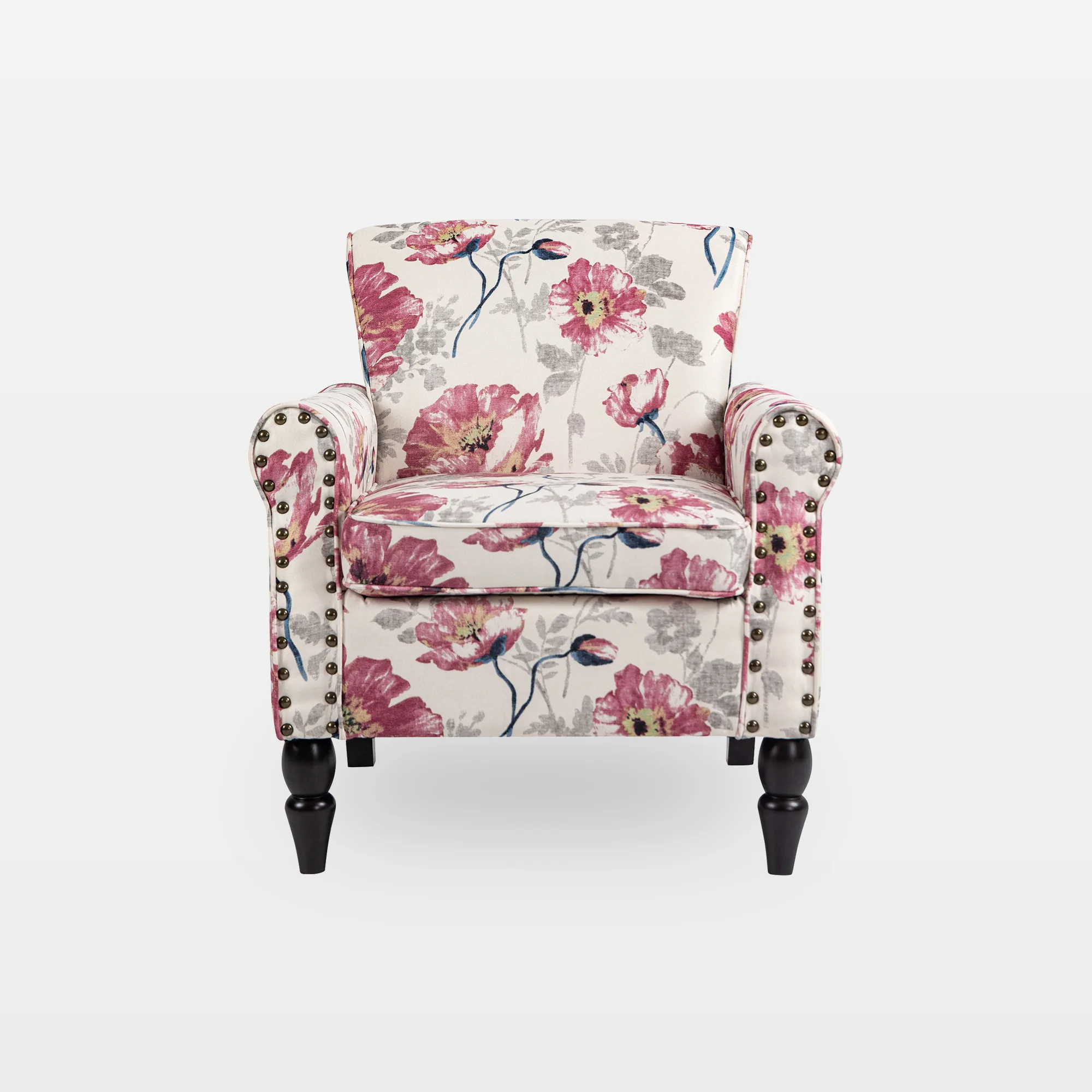 Is it time to retire the oversized sectional in a smaller living room? Build a lighter conversation setup with two of our Aveloy rolled arms accent chairs in solid cotton linen and a small round table. The fabric keeps the look airy and calm against wood floors and greenery, leaning Japandi or modern farmhouse. Rolled arms give an easy, natural grip, while the vertical nailheads add a touch of dressed-up structure.