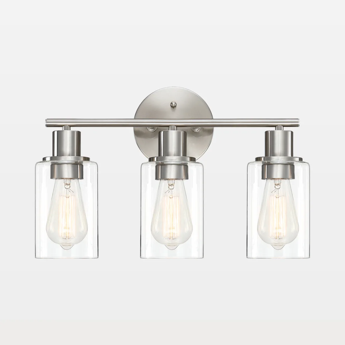 - Also, our bathroom vanity lights are E26 base and require 3 bulbs (max 60W/bulb), please note that the bulbs are not included. Incandescent, CFL, Halogen and LED bulbs are all suitable, but old fashioned Edison bulbs are recommended.