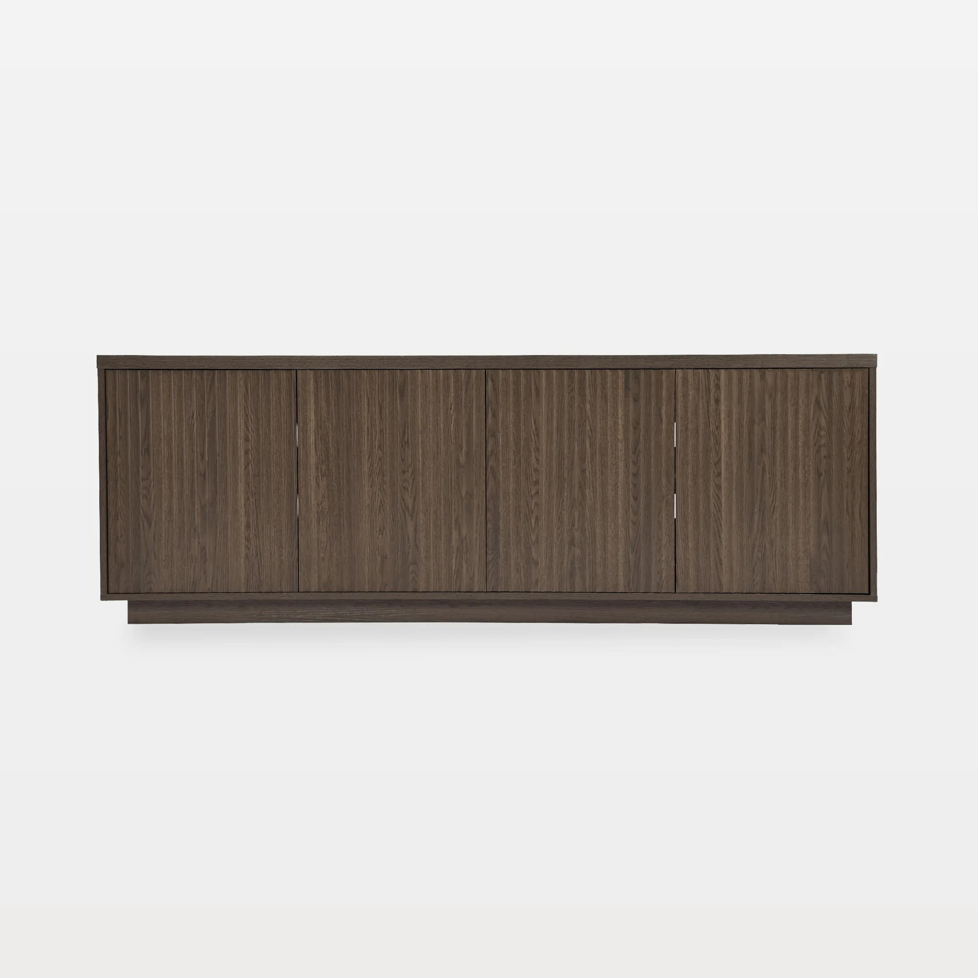 Bevan 68.5″ Four-Door Wood Grain Media Console with Plinth Base