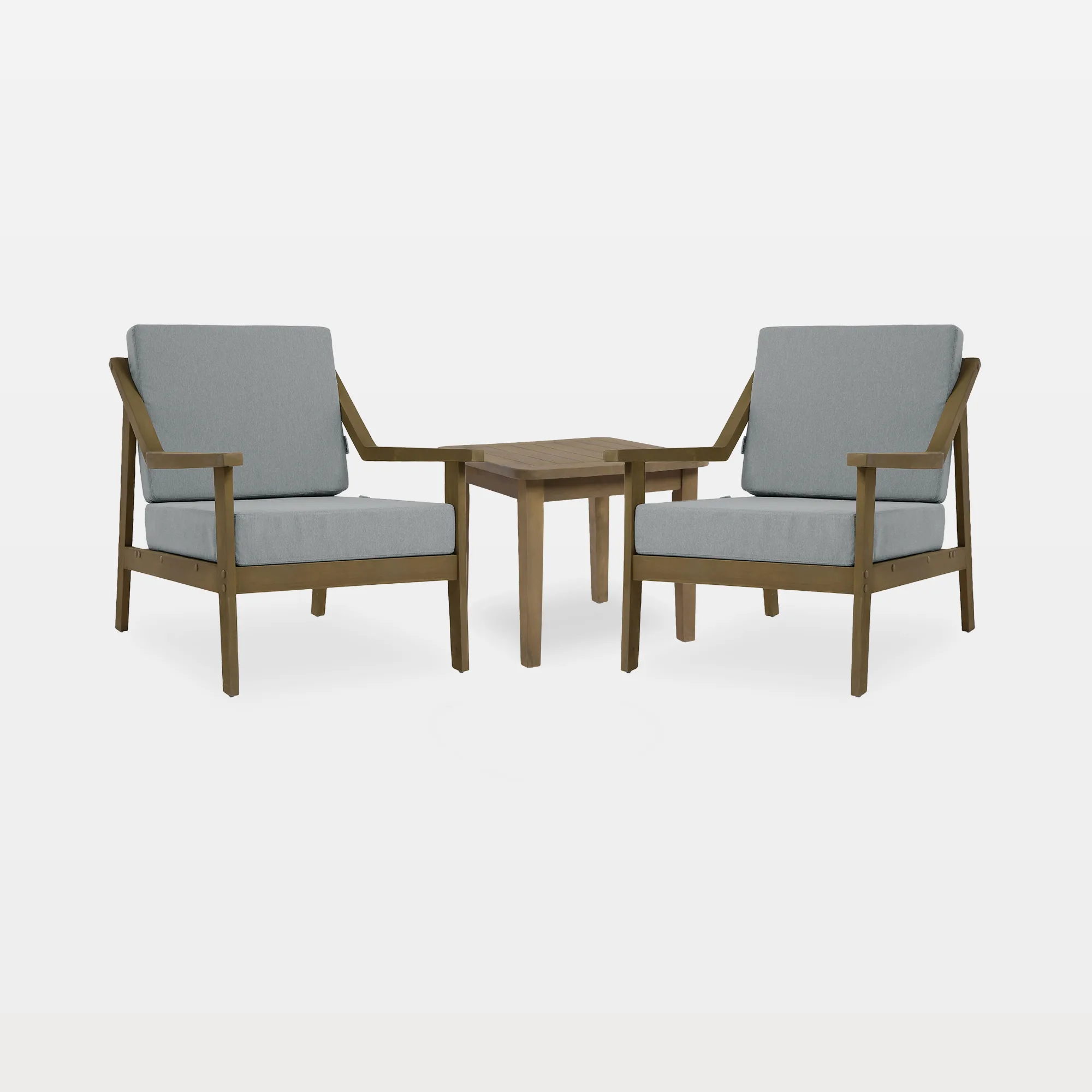 Felian 3-Piece Angled Arms Teak Outdoor Armchairs & Side Table