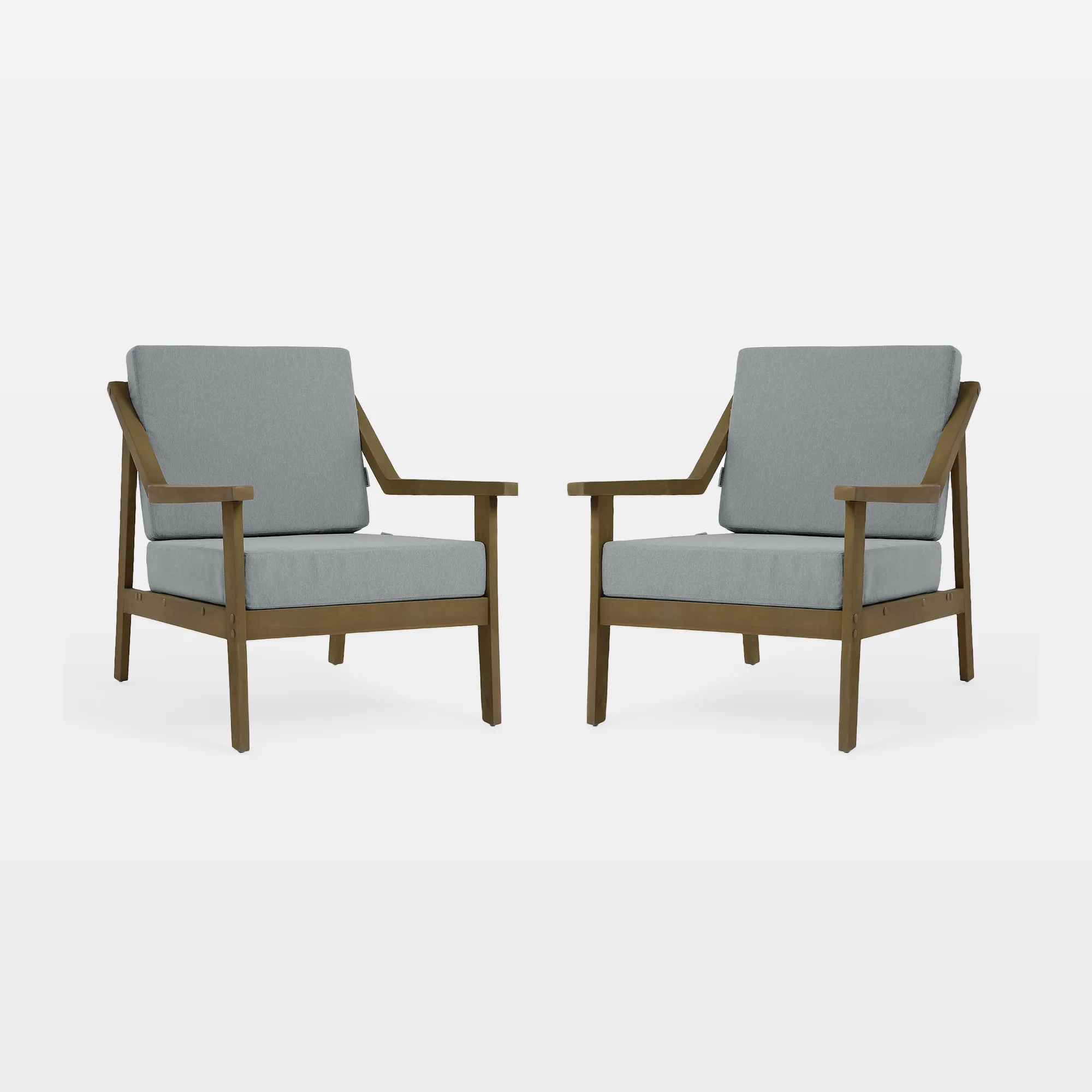 - Teak frame gives the chairs a grounded structure that feels calm and enduring outdoors.