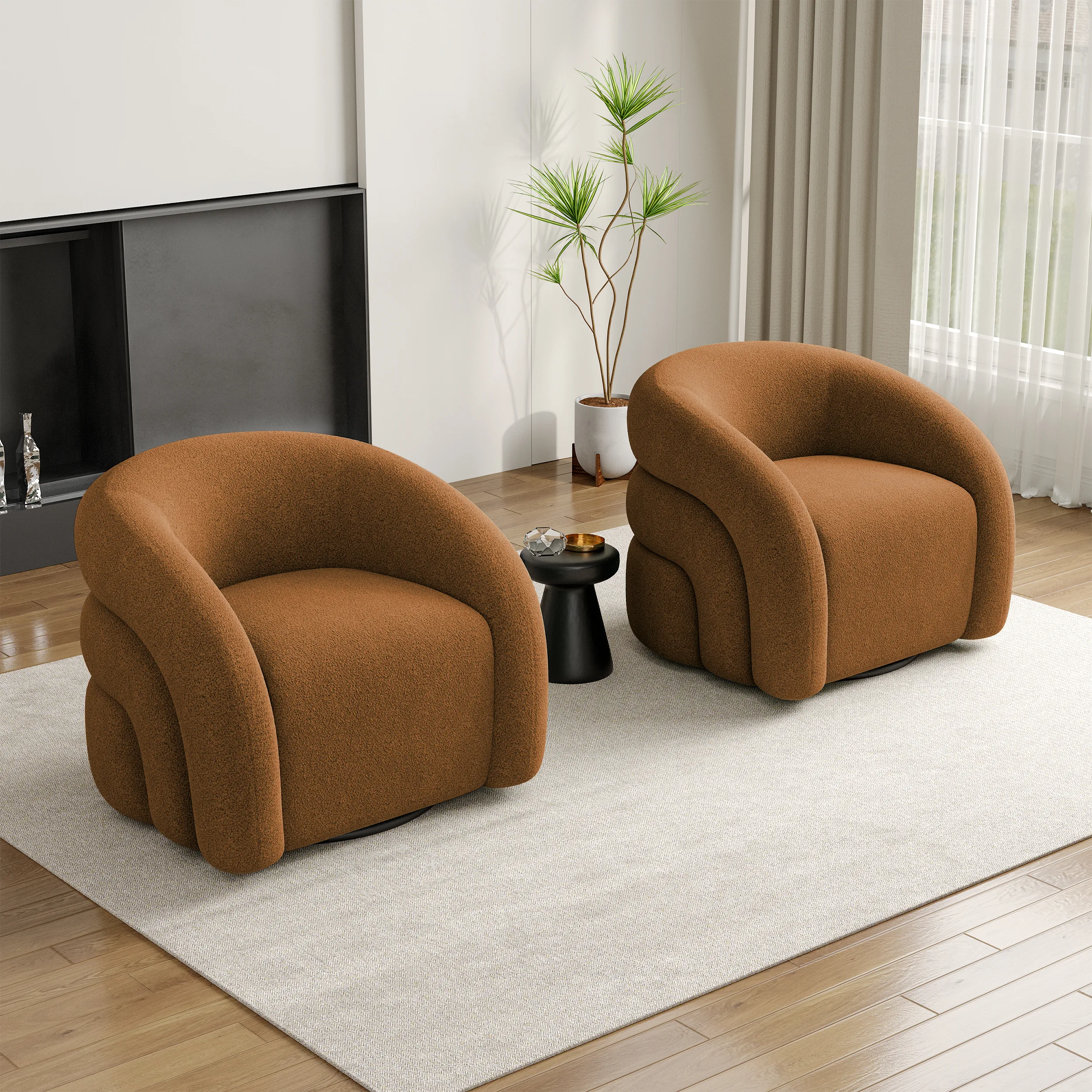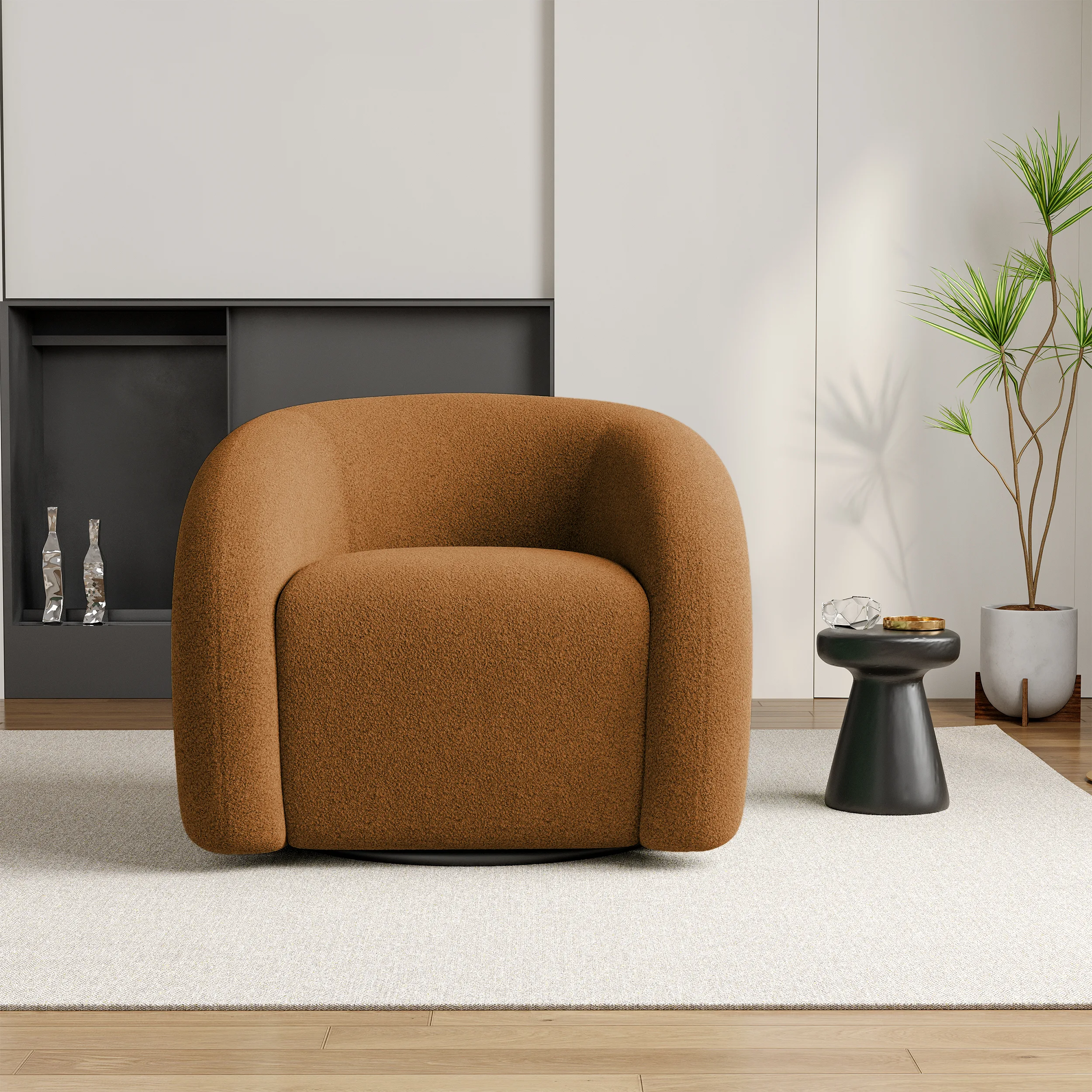 This accent chair offers the perfect combination of style and comfort, featuring plush boucle fabric that adds a touch of modern elegance to any space. The seat is filled with innerspring/coil, foam, and synthetic fiber, providing a cozy yet supportive sitting experience. The 360° swivel function ensures easy movement, letting you rotate the chair effortlessly to find your ideal position. Crafted with a durable solid wood frame and iron legs, this chair is built to last. Plus, no assembly is required—simply open the box and enjoy. Its sleek, neutral design makes it an excellent addition to any living room or office.