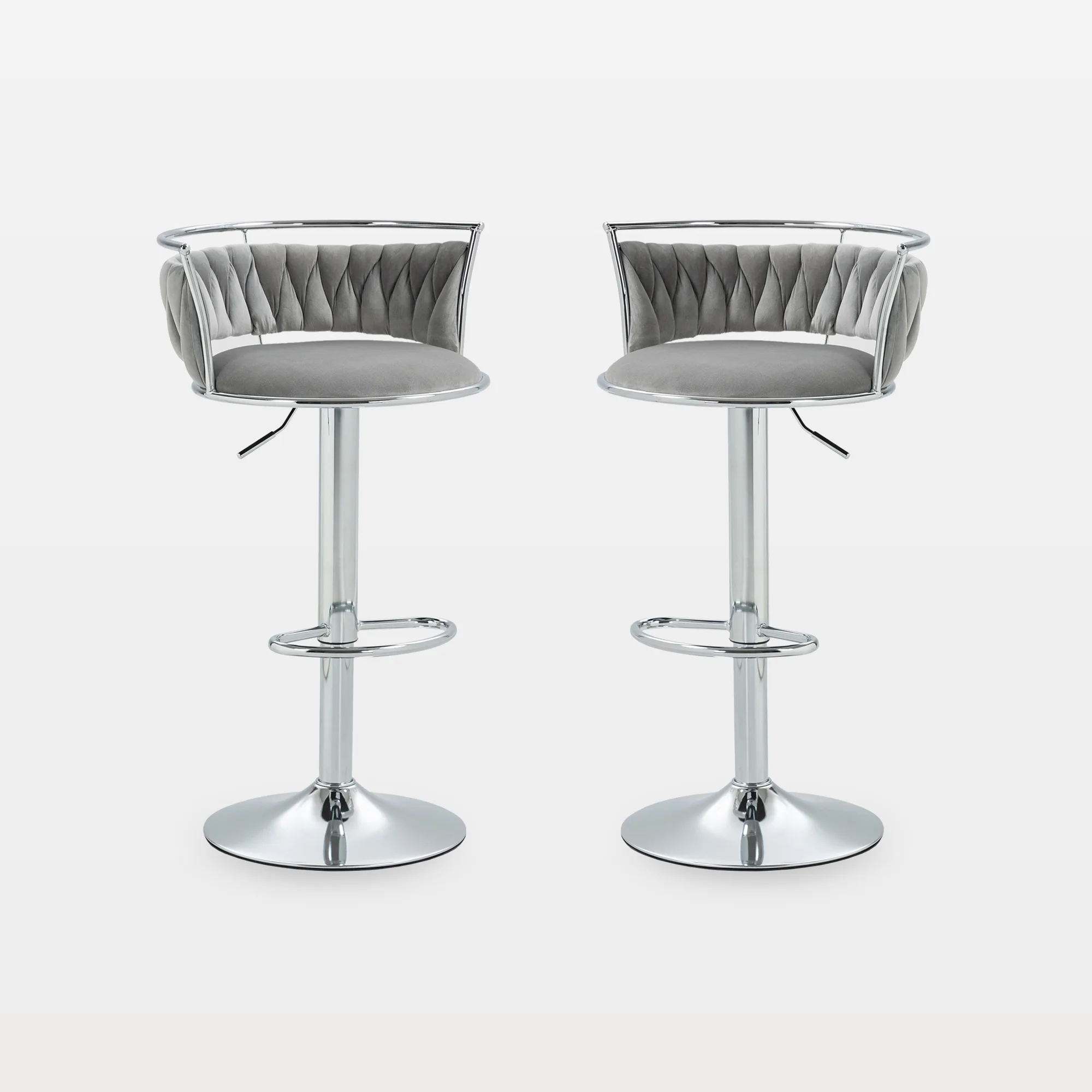 We always hope to have a chair like this—It needs both fashion and a feeling of comfort, is durable enough to accompany us for a long time, and can be suitable for various scenes, such as kitchens, shops, shopping malls, clubs, etc. In addition, quick and easy installation and adjustment are also necessary. Much more comfortable than expected with a footrest and wide seat. Plenty of padding in the seat cushion, a velvet cushion material, and the backs make you completely relaxed. It is easy to lift and lower the height, this bar stool is here to make your life easier! You will enjoy 360-degree rolling while chatting or having dinner with your family and friends. The metal part of the chair with excellent processing can meet higher standards of quality. A wide and large base makes the drafting stool more stable when you swivel. This dual-use stool gives you two chairs for the price of one. The height-adjustable swivel seat adjusts from counter to bar height with the handle located below the seat.