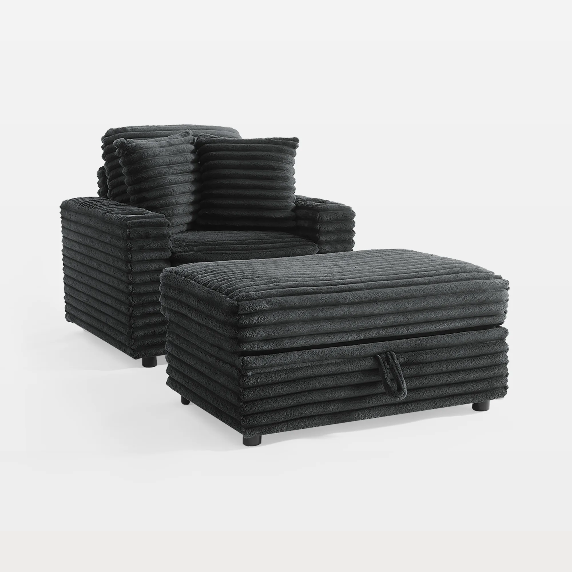Maudra Modern Faux Fur Oversized Chair with Storage Ottoman