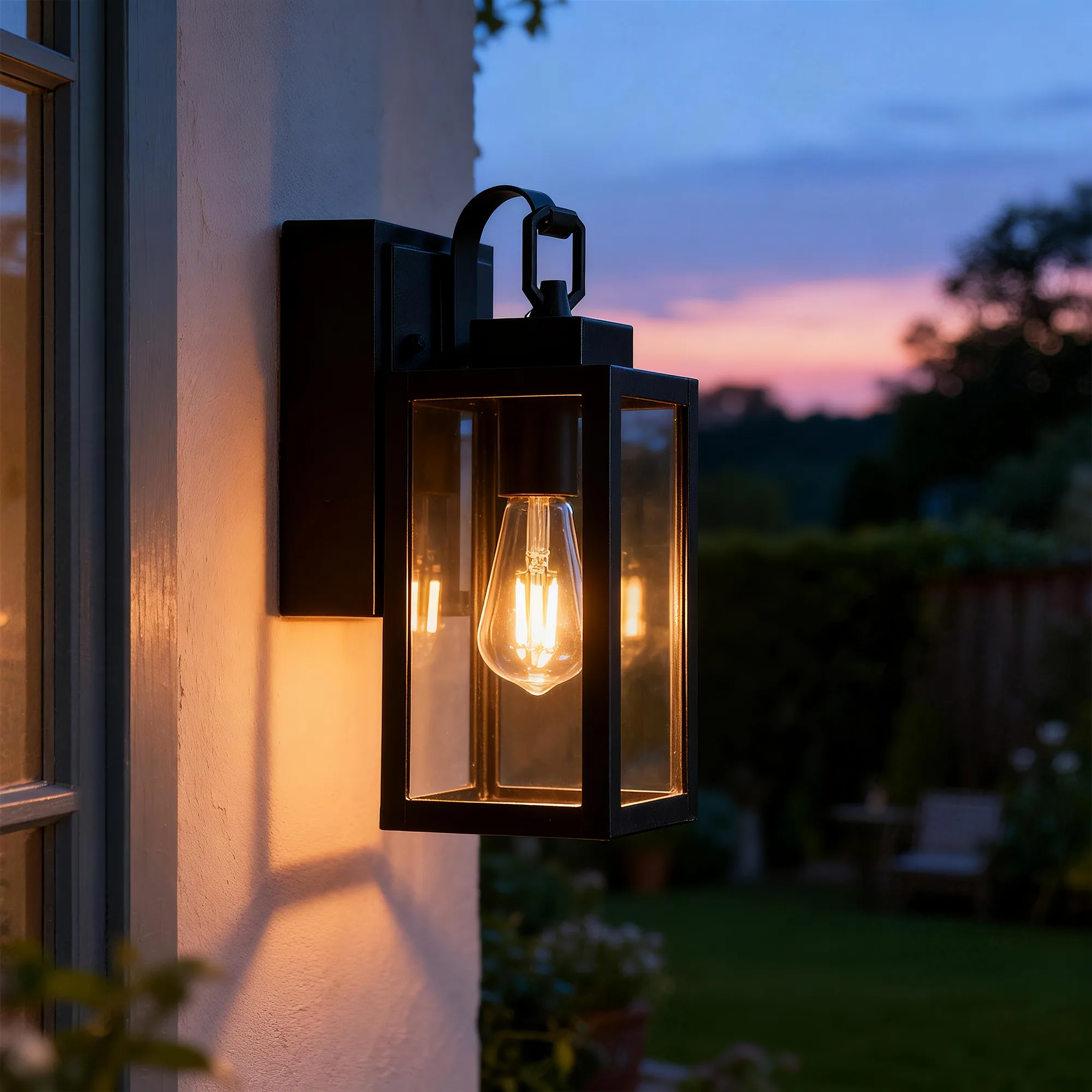 Squared, clean-lined lantern silhouette adds crisp structure with a tailored outdoor look.