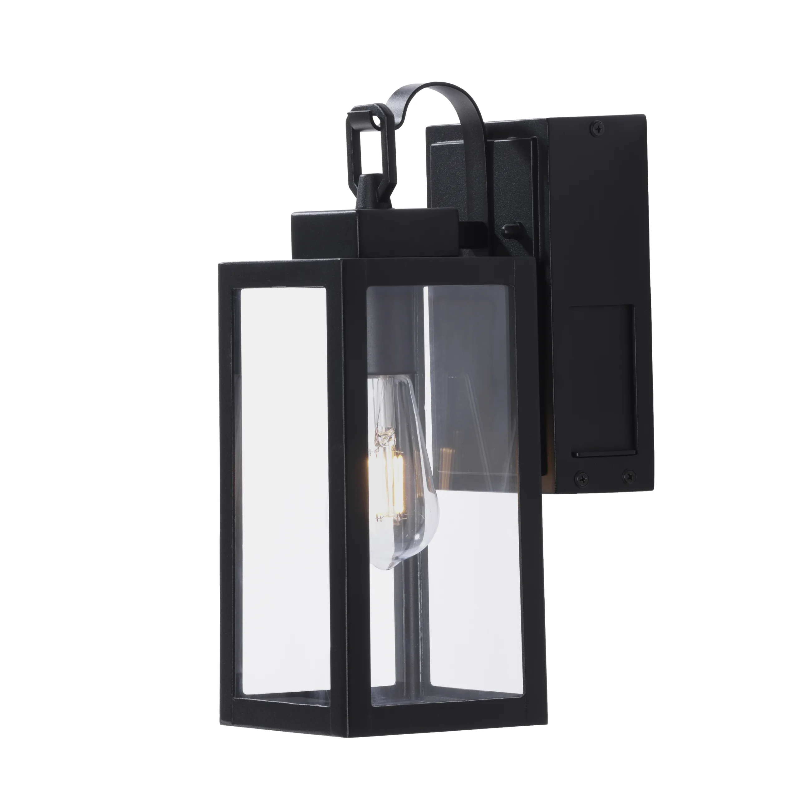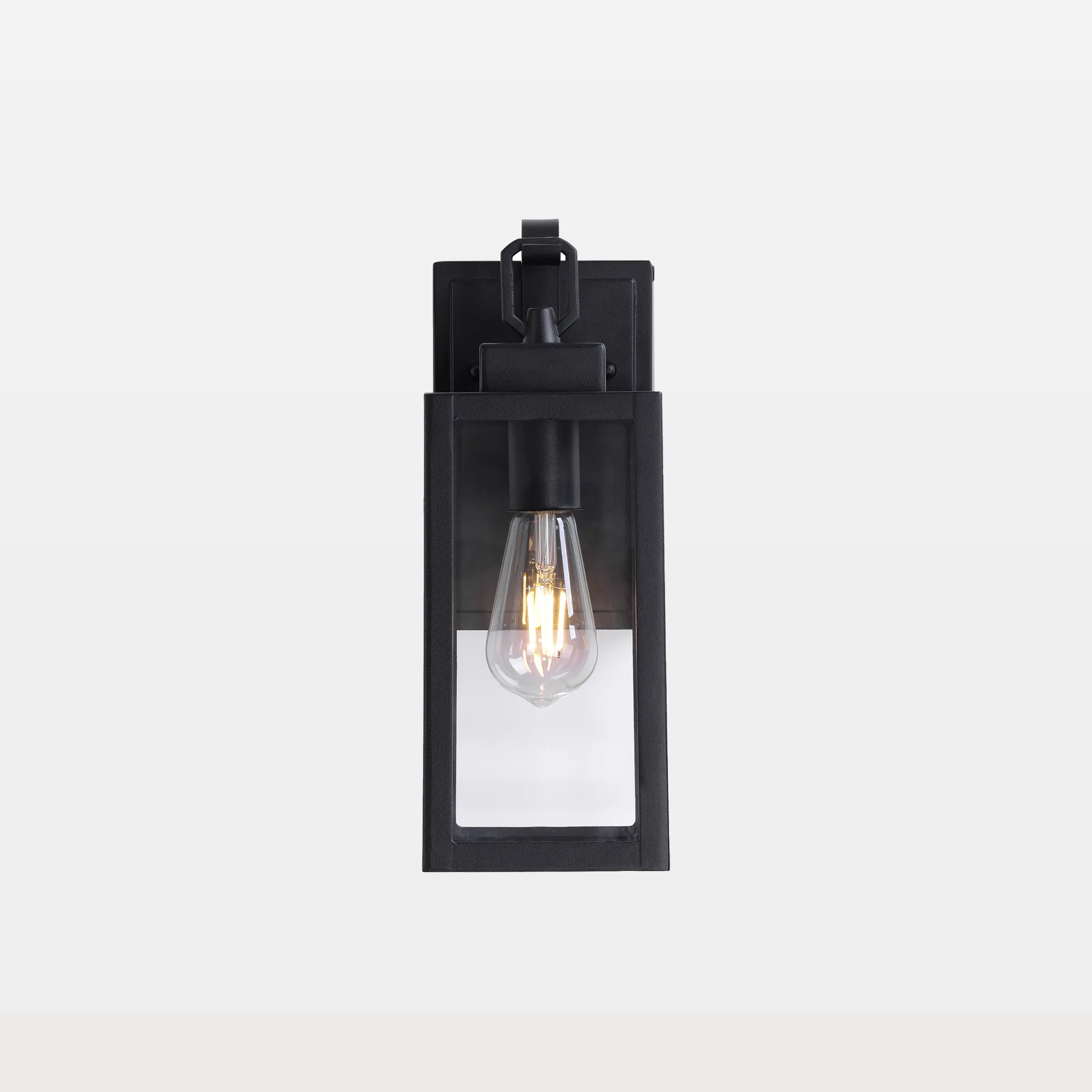 Coming home after dark and still need an outdoor outlet you can trust? Our Bexie 1-Light Outdoor Wall Lantern Light with GFCI Outlet brings a squared, modern lantern look plus built-in protection right on the backplate. The matte black metal frame stays crisp, while clear glass keeps the single bulb bright and open instead of boxed in. Use the GFCI outlet for string lights, a speaker, or a quick phone charge, with added peace of mind in wet outdoor areas. It runs on 120V with an E26 socket up to 60W, and it is ETL certified and wet rated for exposed outdoor use. The result feels clean, capable, and ready for busy nights at the door.