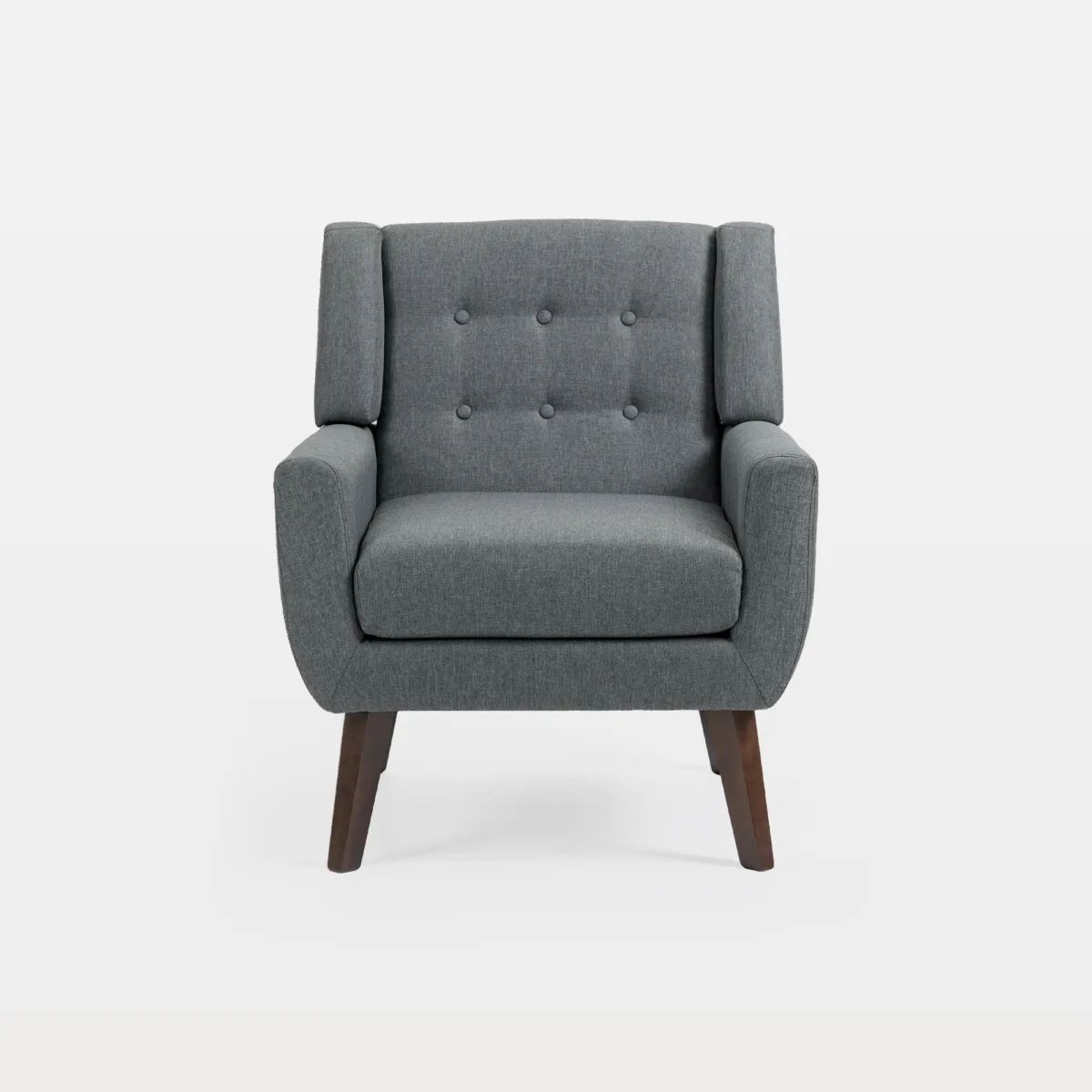 Place our Orsona button tufted armchair beside a floor lamp for a light reading nook, or angle it toward the sofa to keep conversation easy. Mid-century legs lift the look, the shouldered back adds presence, and the whole piece reads effortlessly from retro apartments to minimalist living rooms.