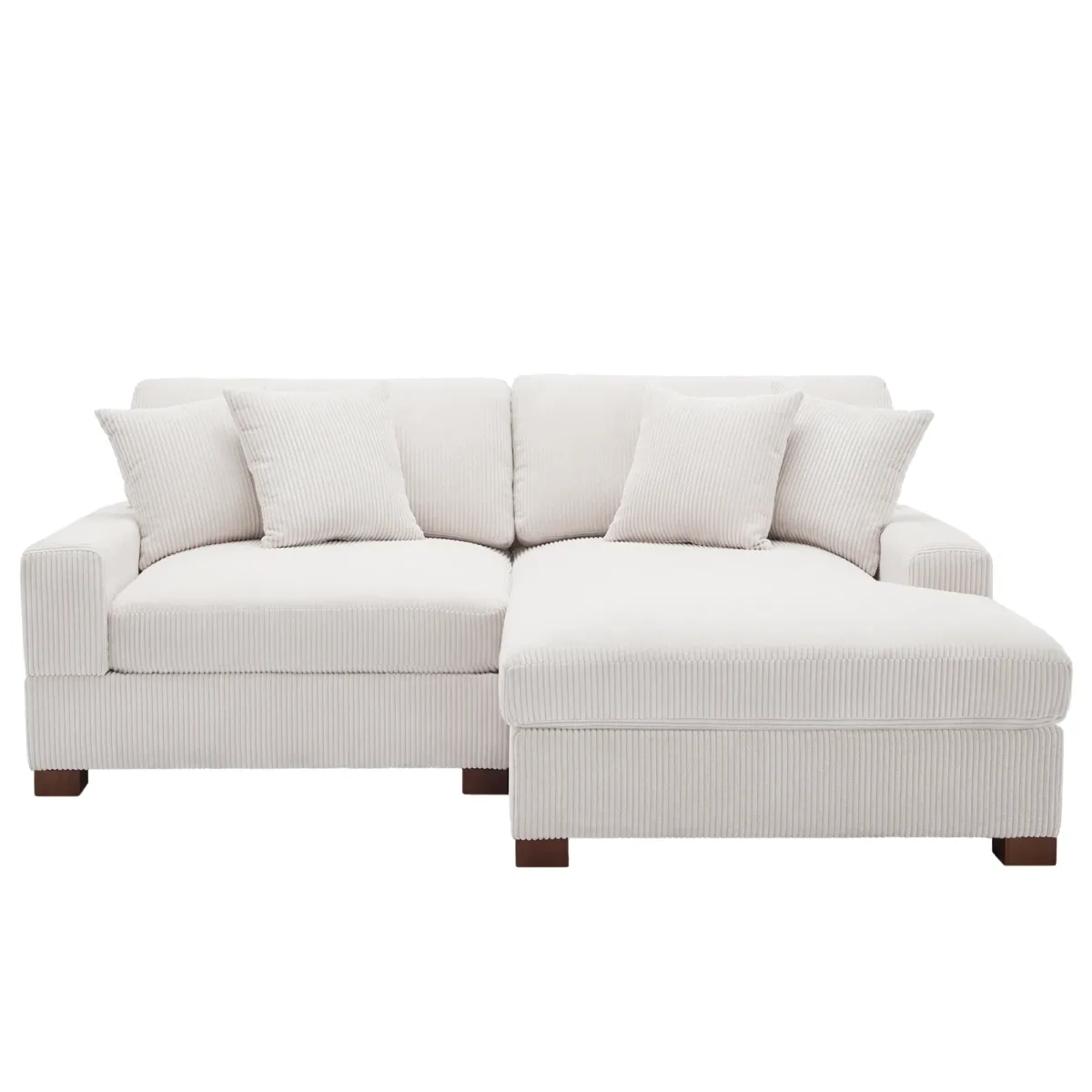 - The sturdy wooden legs can support the sofa firmly. Plus the four complimentary small pillows, you can use them as you like, cushion behind you or cushion on the inside of the armrests, it’s all up to your preference!