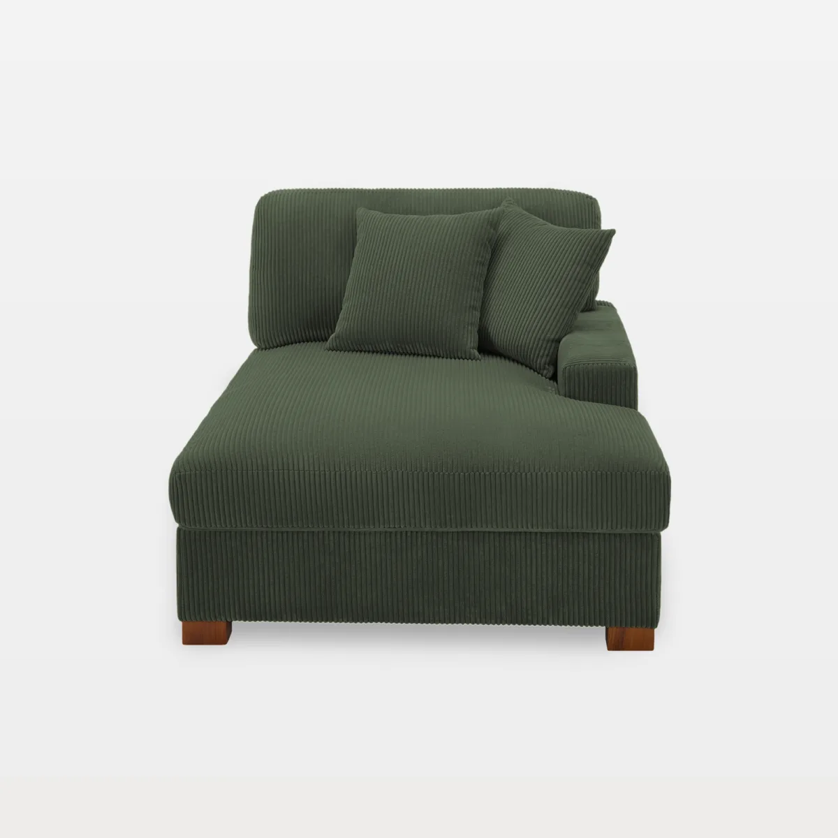 Includes 1 single-arm chaise lounge, 1 back cushion, and 2 matching pillows for layering.