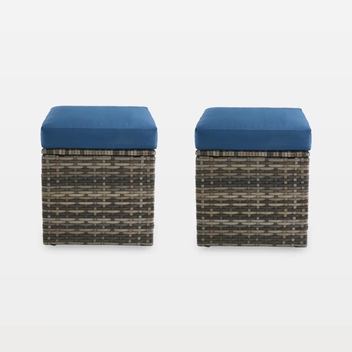 More ways to lounge, without changing the whole setup. Our Vadah PE Wicker Outdoor Patio Square Ottoman with Cushion slides in as a clean square perch that works as a footrest, extra seat, or tray spot for drinks. Weather-resistant PE wicker wraps a powder-coated steel frame for everyday outdoor use. Choose a lighter weave or a deeper tone to match your space or pair with your existing patio set. Up top, a splash-resistant cotton-blend cushion cover keeps things comfortable and easier to wipe down. Pull it closer, kick back, and let the patio feel a little more finished.