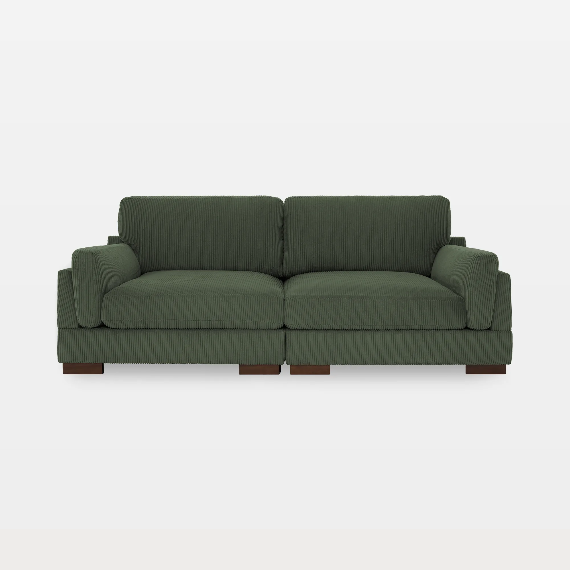This sofa features a streamlined silhouette and ample space, ideal for unwinding after a busy day. Its frame is crafted from solid wood and engineered wood, complemented by modern square wooden legs. The premium corduroy upholstery is both comfortable and soft, while the seat is supported by a combination of springs, foam, and cotton for ultimate relaxation. The unique double armrests and solid-colored seating enhance the understated elegance of its design.