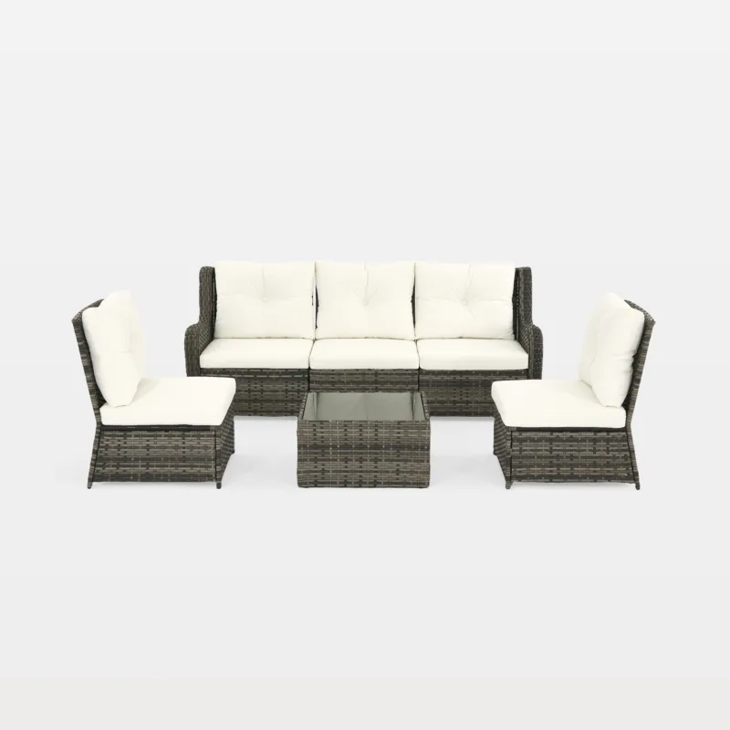Marlie 6-Piece PE Wicker Cushioned Outdoor Patio Set with Table