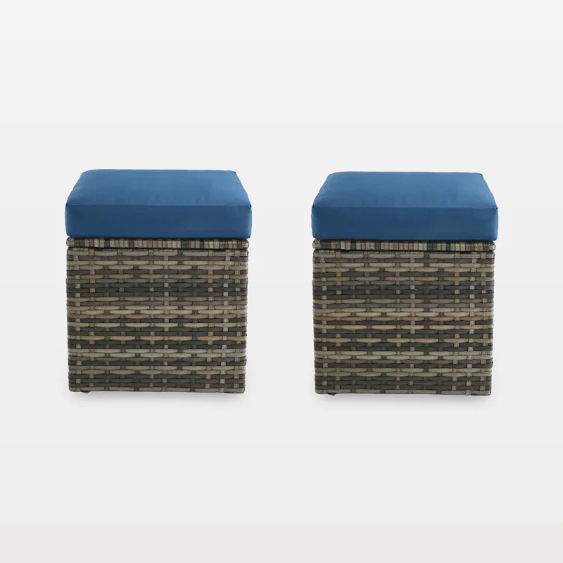 Vadah PE Wicker Outdoor Patio Square Ottoman with Cushion